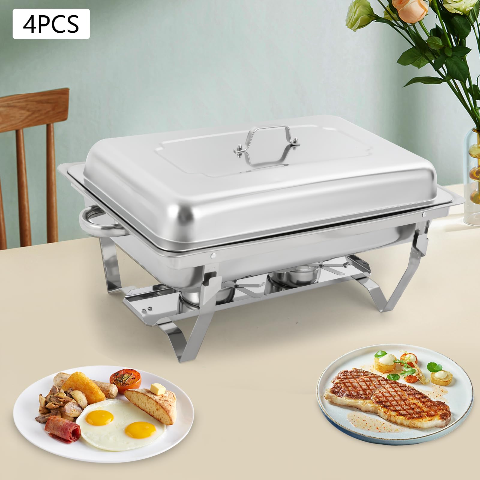 Professionelles Catering-Set für Gastronomie und private Feste! 4 Edelstahl-Warmhaltebehälter mit je 9L Fassungsvermögen und passenden Deckeln. Aus lebensmittelechtem 201 Edelstahl, 0,7mm stark und durch integrierte Formgebung besonders robust. Jede Pfanne misst 53,5x30,5x10cm (21x12x4 Zoll). Die konkaven Deckel schließen perfekt ab, schützen vor Staub und halten die Speisen länger warm. Glatte Oberflächen und abgerundete Ecken machen die Reinigung super einfach - spülmaschinengeeignet! Perfekt für Restaurants, Hotels, Buffets, Partys oder große Familienfeiern. Kann gestapelt werden und spart so Platz. Ideal für gedämpfte Brötchen, Reis, Gemüse oder gekühlte Speisen.