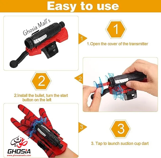 Perfekt für Rollenspiele, Kindergeburtstage oder Karneval. Fördert Kreativität und motorische Fähigkeiten. Maße: Launcher 15x7,3x4,5cm, Handschuhe 23,5x10cm. Ein ideales Geschenk für kleine Spider-Man Fans!
