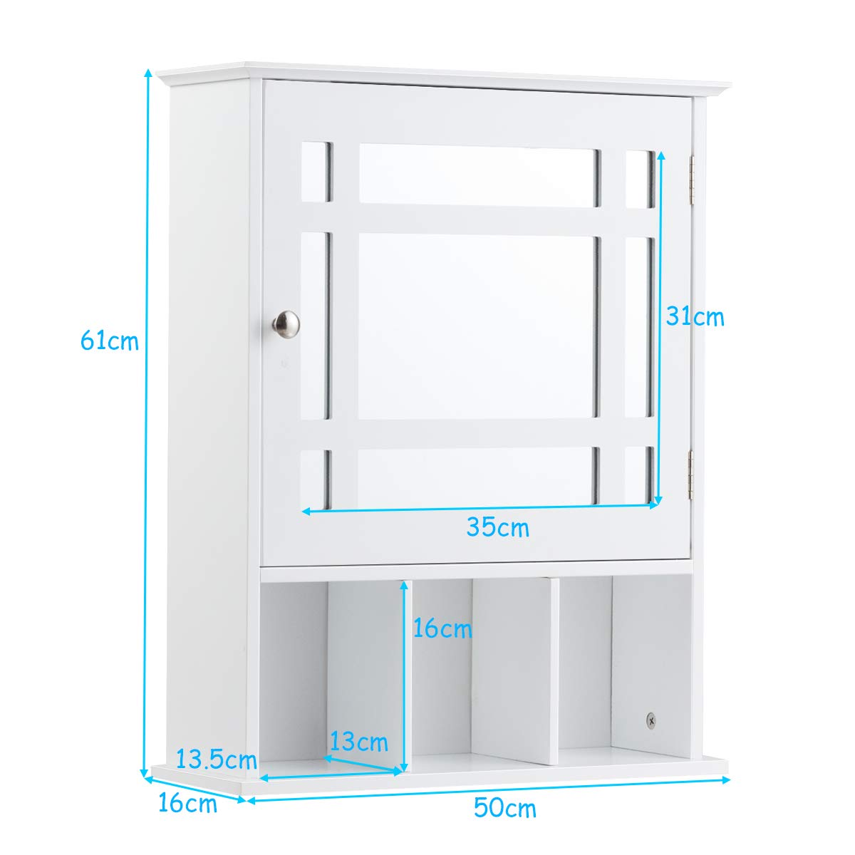 COSTWAY Badezimmerschrank Mit Spiegel - Weißer Hängeschrank Mit Verstellbaren Böden