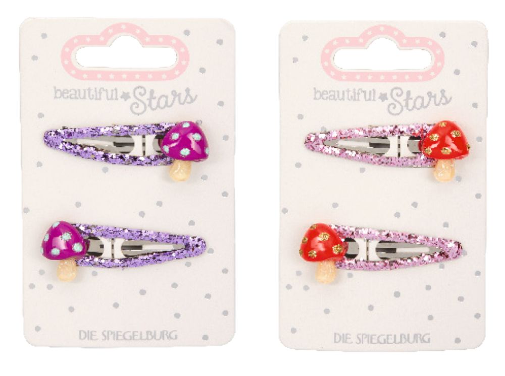 Total süße Erdbeer-Haarclips für kleine Prinzessinnen! 2er Set mit glitzernden Erdbeer-Motiven. Perfekt für Zöpfe, Pferdeschwänze oder einfach als hübsche Accessoires. Von Die Spiegelburg - bekannt für qualitativ hochwertige Kinderprodukte. Ideal für den Adventskalender, Nikolausstiefel oder als kleine Aufmerksamkeit. Machen jede Frisur sofort hübscher. Leider keine Motivauswahl möglich - aber Erdbeeren lieben doch alle Mädchen, oder? Einfach ins Haar stecken und strahlen!