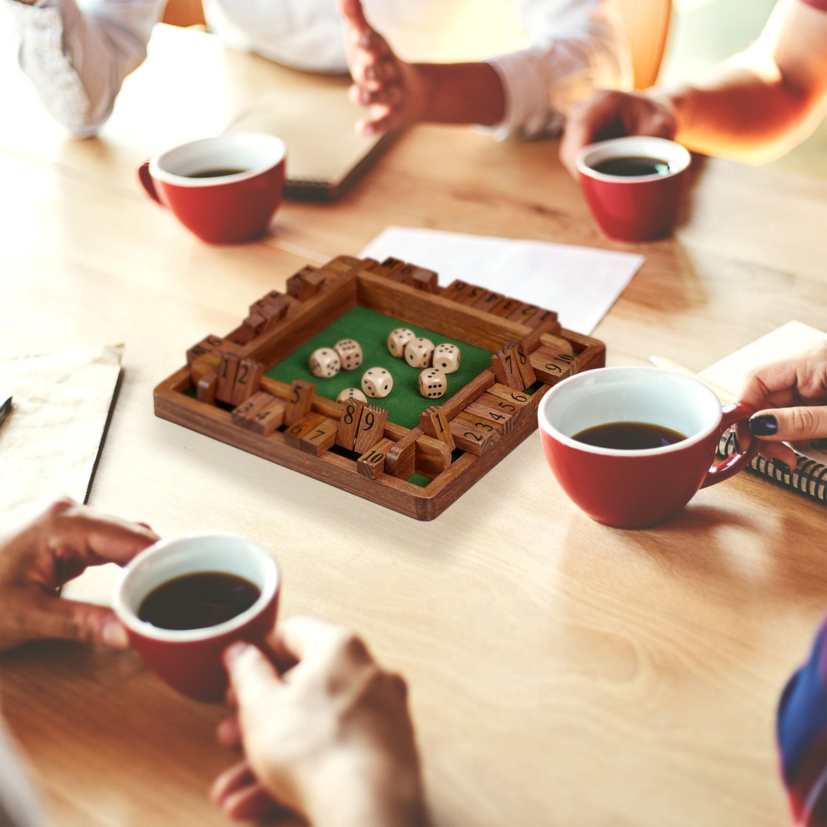 Der absolute Spieleklassiker für die ganze Familie! Shut The Box macht nicht nur riesen Spaß, sondern trainiert auch noch Mathe-Fähigkeiten - und das ganz nebenbei! Aus natürlichem Holz mit schwarzer Filz-Oberfläche, Maße 22x22x3cm. Für 2-4 Spieler ab 3 Jahren (Achtung: Kleinteile, nicht unter 36 Monaten!). Einfach würfeln und die entsprechenden Klappen schließen - wer zuerst alle Klappen zu hat, gewinnt! Perfekt für Spieleabende, Partys oder einfach so zwischendurch. Fördert spielerisch Addition und Subtraktion - ideal also für Kinder im Grundschulalter. Aber auch Erwachsene haben ihren Spaß dabei! Kommt mit 8 Würfeln - alles was du brauchst also. Deutsche Relaxdays Qualität - darauf kannst du dich verlassen! Macht süchtig und ist immer wieder gut für unterhaltsame Stunden mit Familie und Freunden!