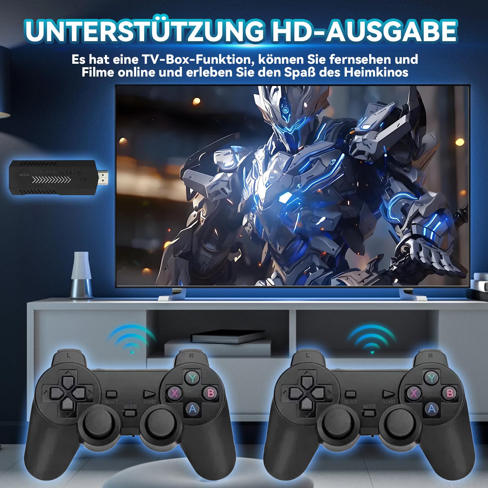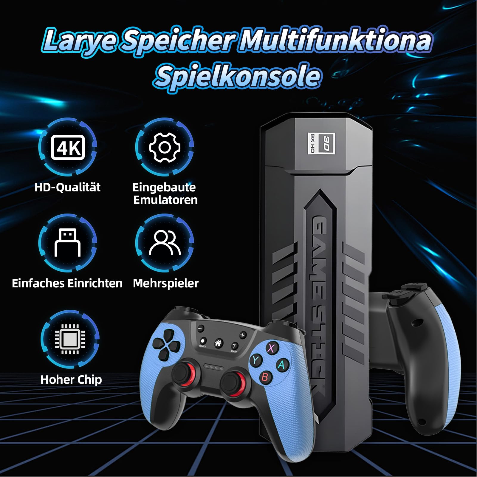 • X2 Blue Retro Spiel Stick 4K - 30.000+ Spiele 64GB Mit Controllern