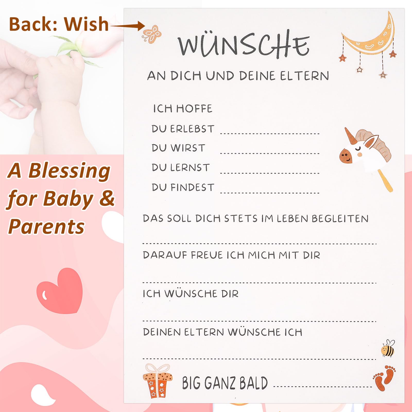 Das Set fördert die Interaktion unter den Gästen und schafft eine lockere, kreative Atmosphäre. Perfekt für Jungen und Mädchen - und eine tolle Alternative zu den immer gleichen Baby-Shower-Spielen!