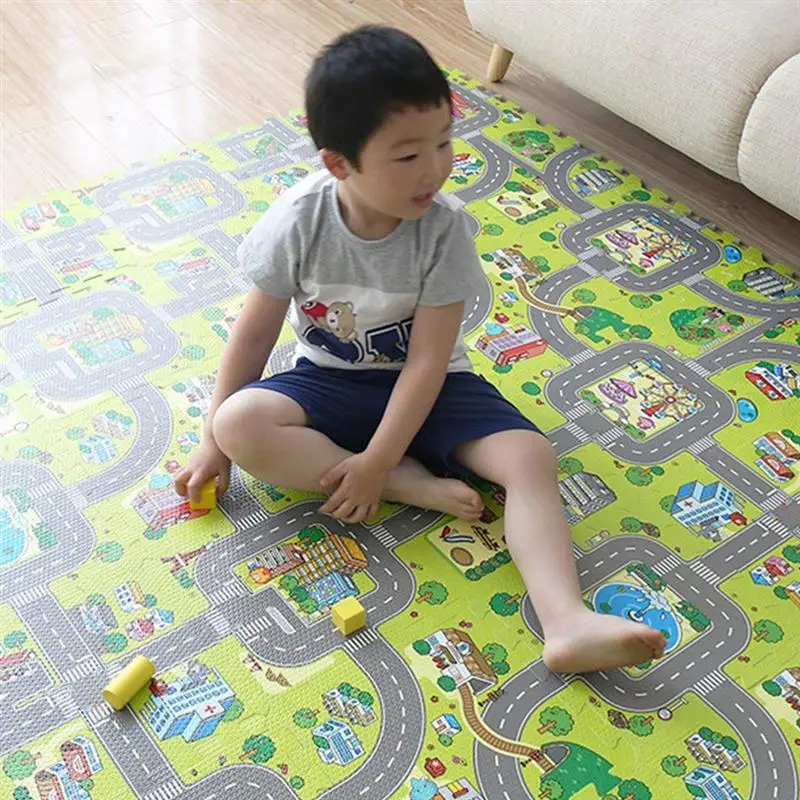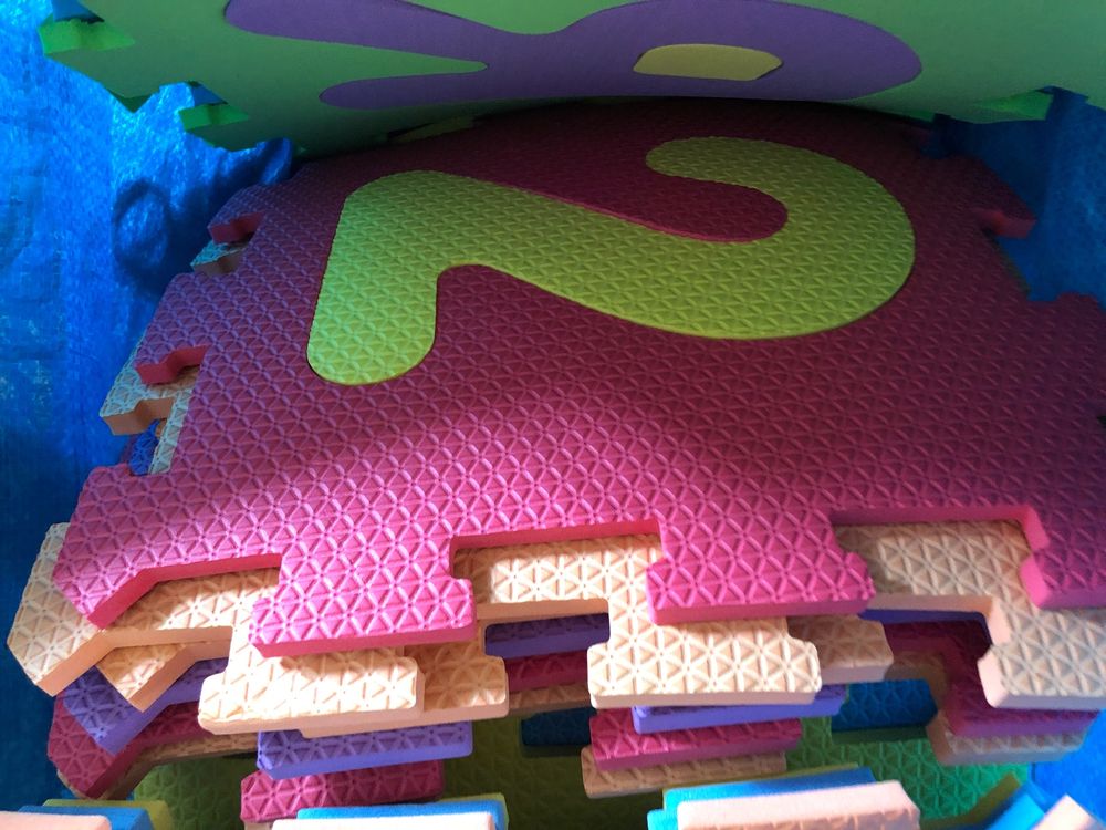 Perfekt für krabbelnde Babys und spielende Kinder! Diese 9-teilige Puzzle-Matte aus EVA-Schaum ist je 30x30 cm groß und 1 cm dick - weich und sicher bei Stürzen. Insgesamt ergibt sich eine Fläche von 92x92 cm, die sich beliebig zusammenstellen lässt. Super flexibel: Als Rennbahn, Spielteppich oder einfach als gemütliche Liegefläche. Für drinnen und draußen geeignet, waschbar und absolut ungiftig. Entspricht allen europäischen Sicherheitsstandards. Verhindert das Durchdringen von Feuchtigkeit und schützt vor kalten, harten Böden. Dein Kind wird sich freuen!