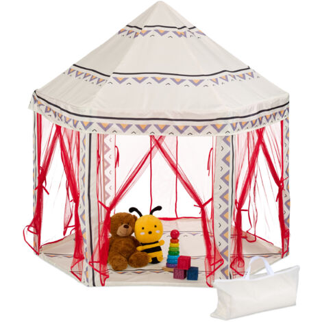 Ein eigenes Reich für deine kleinen Abenteurer! Dieses bezaubernde Spielzelt im Khaki-Design wird zum absoluten Lieblingsplatz im Kinderzimmer. Mit 105x128x120 cm bietet es genug Platz für 3-4 Kinder zum Spielen, Lesen oder für geheime Abenteuer.\n\nDas Zelt hat eine richtige Tür und zwei Fenster mit Vorhängen - so können die Kinder nach Herzenslust Verstecken spielen, Prinzessin sein oder als Forscher auf Entdeckungstour gehen. Fantasie und Kreativität werden hier groß geschrieben!\n\nDer Aufbau ist super einfach: In nur 5-10 Minuten steht das Zelt werkzeugfrei - perfekt für eine gemeinsame Aktivität mit den Kindern. Die Schritt-für-Schritt-Anleitung macht es auch für ungeübte Hände zum Kinderspiel.\n\nAus reißfestem Polyester gefertigt, ist das Zelt robust und langlebig. Geruchsneutral und schadstofffrei, also völlig unbedenklich für die Kleinen. Das stabile Stahlrohrgestell mit kindersicheren Verbindungen gibt zusätzliche Sicherheit.\n\nOb als gemütliche Kuschelecke für Vorlesestunden, als Versteck für Spielzeug oder als Bühne für Rollenspiele - dieses Zelt bietet unendliche Spielmöglichkeiten. Das perfekte Geschenk für Geburtstage, Weihnachten oder einfach so!
