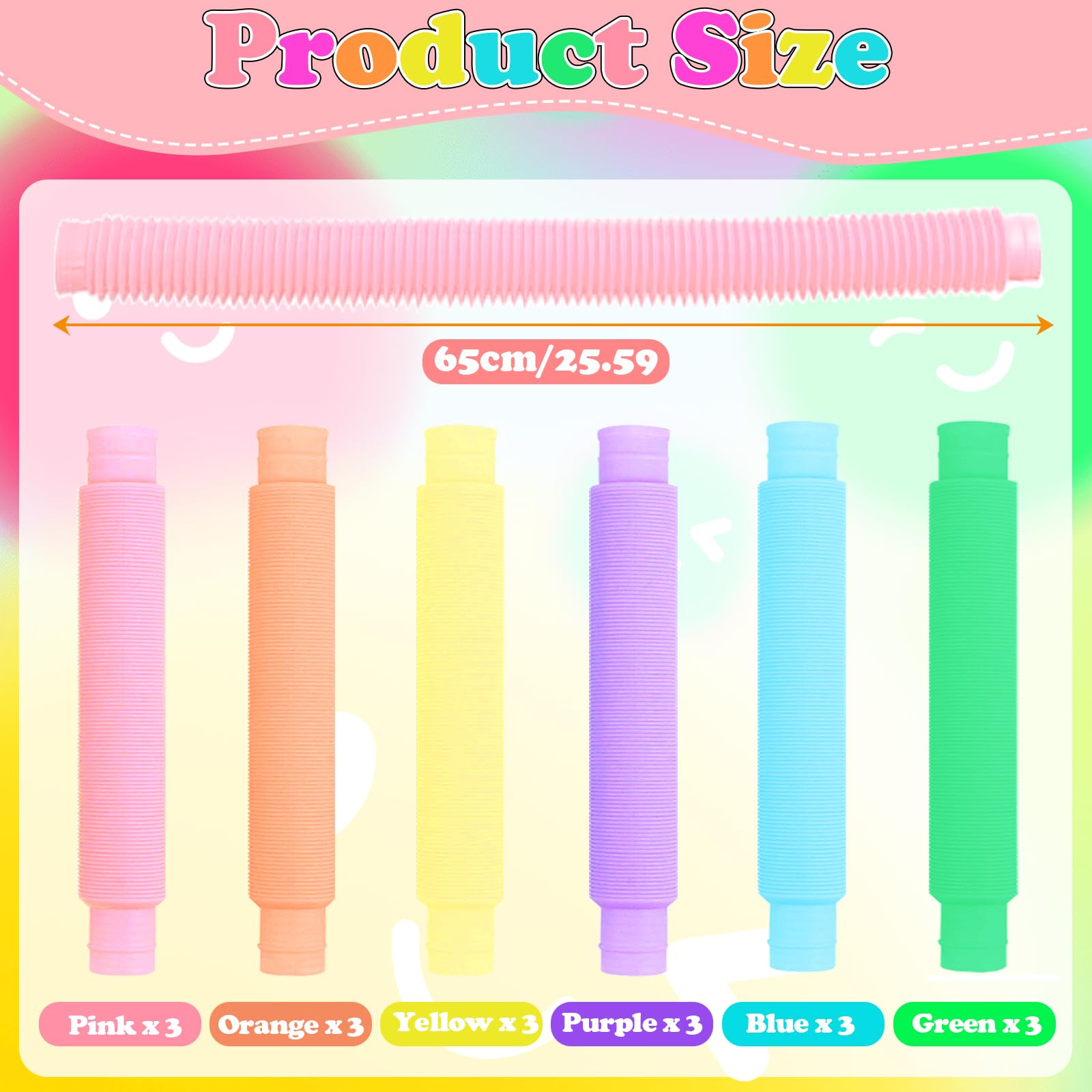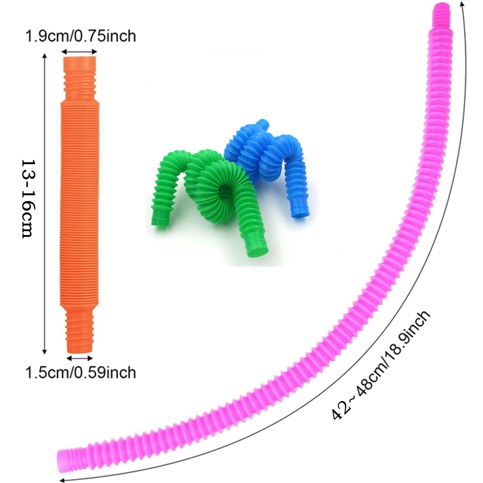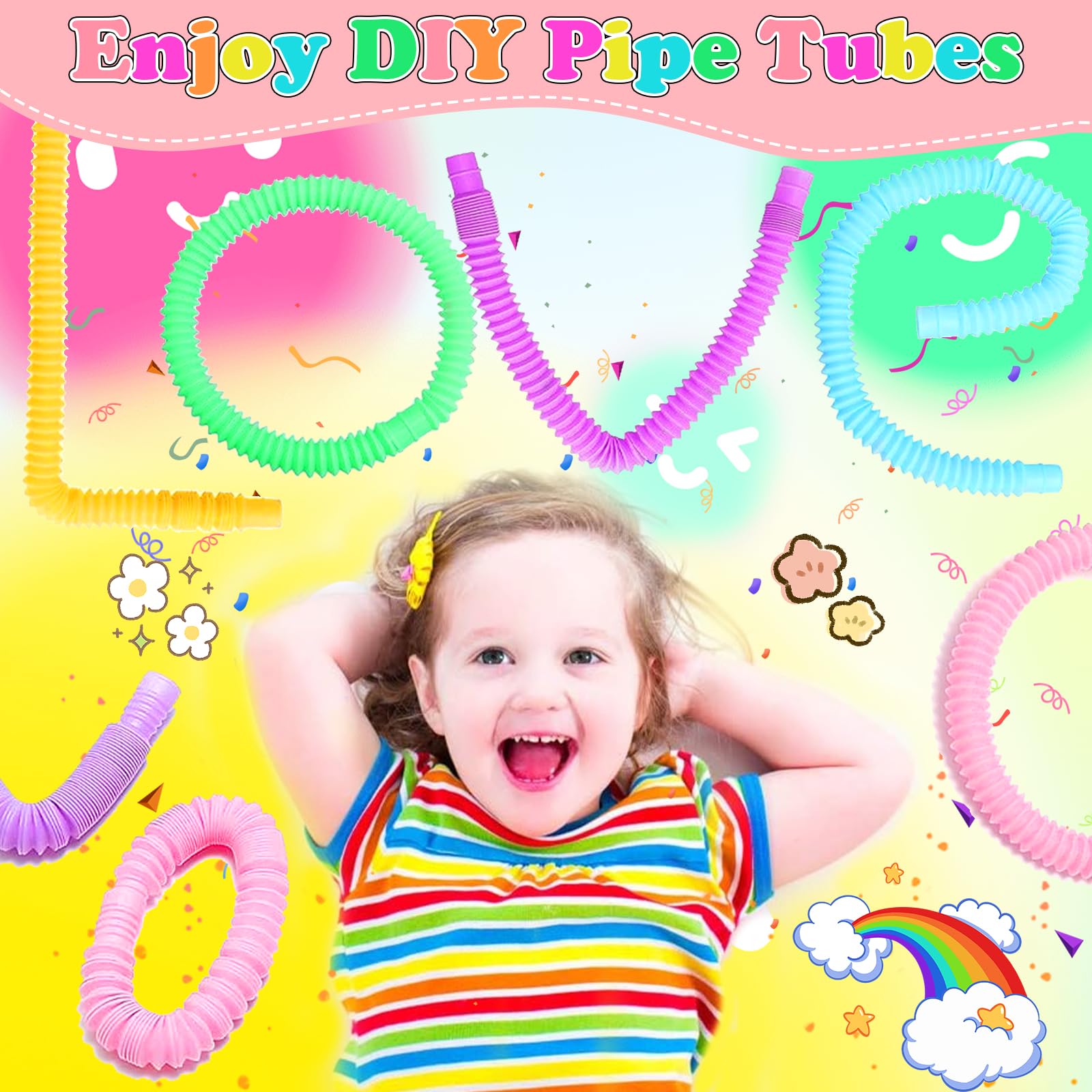Diese bunten Pop Tubes begeistern jedes Kind! 12 farbenfrohe, dehnbare Röhren die sich ziehen, drehen und verbinden lassen. Beim Bewegen machen sie lustige Geräusche - perfekt zur Sinnesstimulation. Aus hochwertigem, flexiblem Kunststoff gefertigt, sicher und leicht zu reinigen. Förderung der Feinmotorik, Kreativität und Hand-Augen-Koordination. Kinder können Buchstaben, Zahlen und verschiedene Formen damit gestalten - der Fantasie sind keine Grenzen gesetzt. Ideal als Montessori-Spielzeug für Kindergarten, Therapie oder Zuhause. Perfekt für Entspannung und Stressabbau, aber auch für gemeinsames Spielen. Ein tolles Geschenk für Kindergeburtstage, als Klassenbelohnung oder für die Spielzeugkiste. Macht nicht nur Spaß, sondern fördert auch wichtige Entwicklungsbereiche. Dein Kind wird diese vielseitigen Spielröhren lieben!