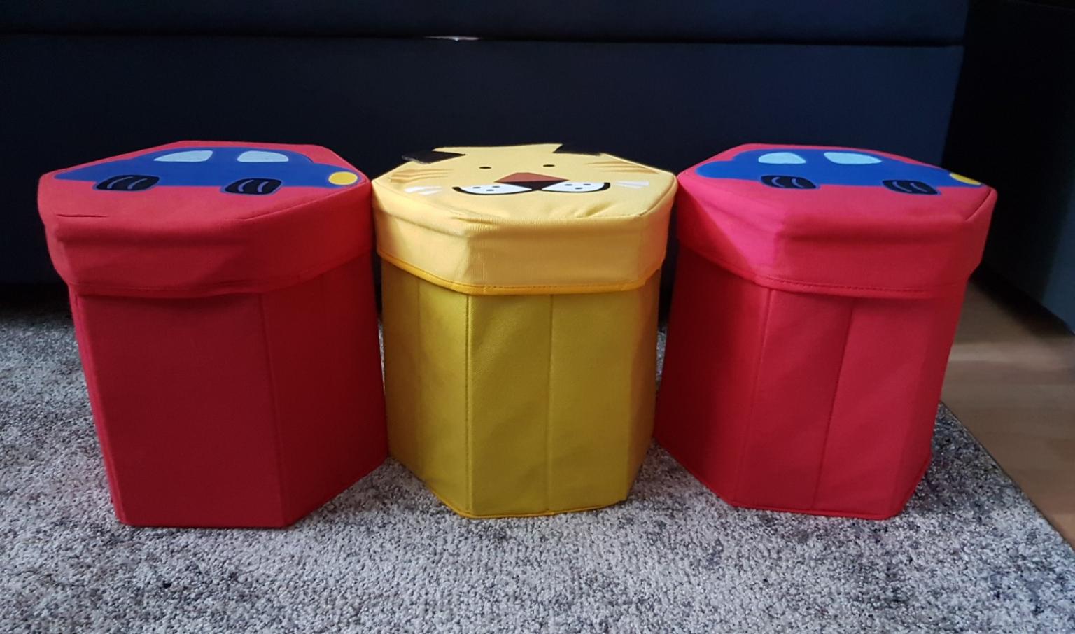Im fröhlichen \Happy Bus\ Design, das Kinder lieben. Super stabil gebaut - hält auch wildes Toben aus. Endlich alles Spielzeug ordentlich verstaut und zusätzlich noch Sitzplätze geschaffen.