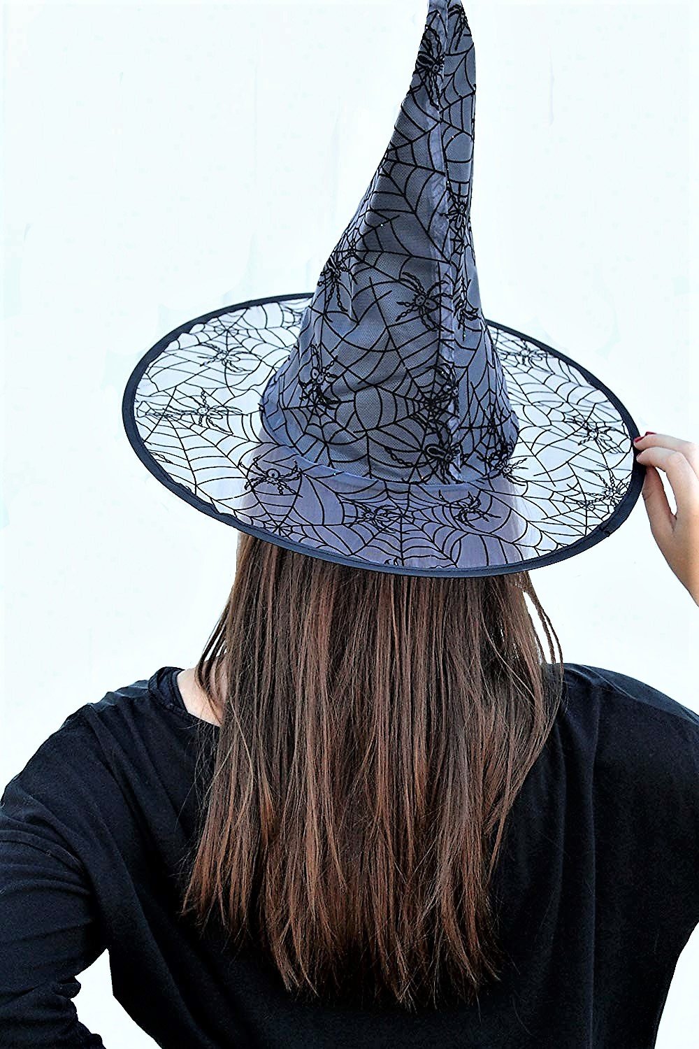 Halloween Hexe Dekofigur - Violettes Spinnennetz Design Mit Glöckchen 23cm