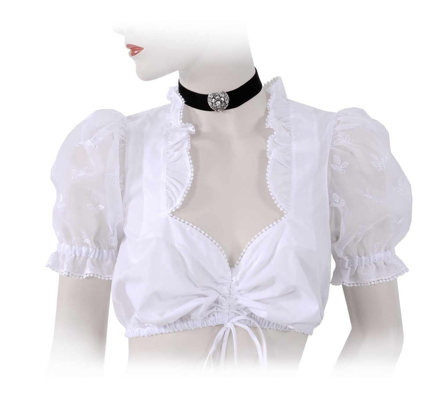 Dirndl Bluse Damen Weiß - Spitze, V-Ausschnitt, Kurzarm