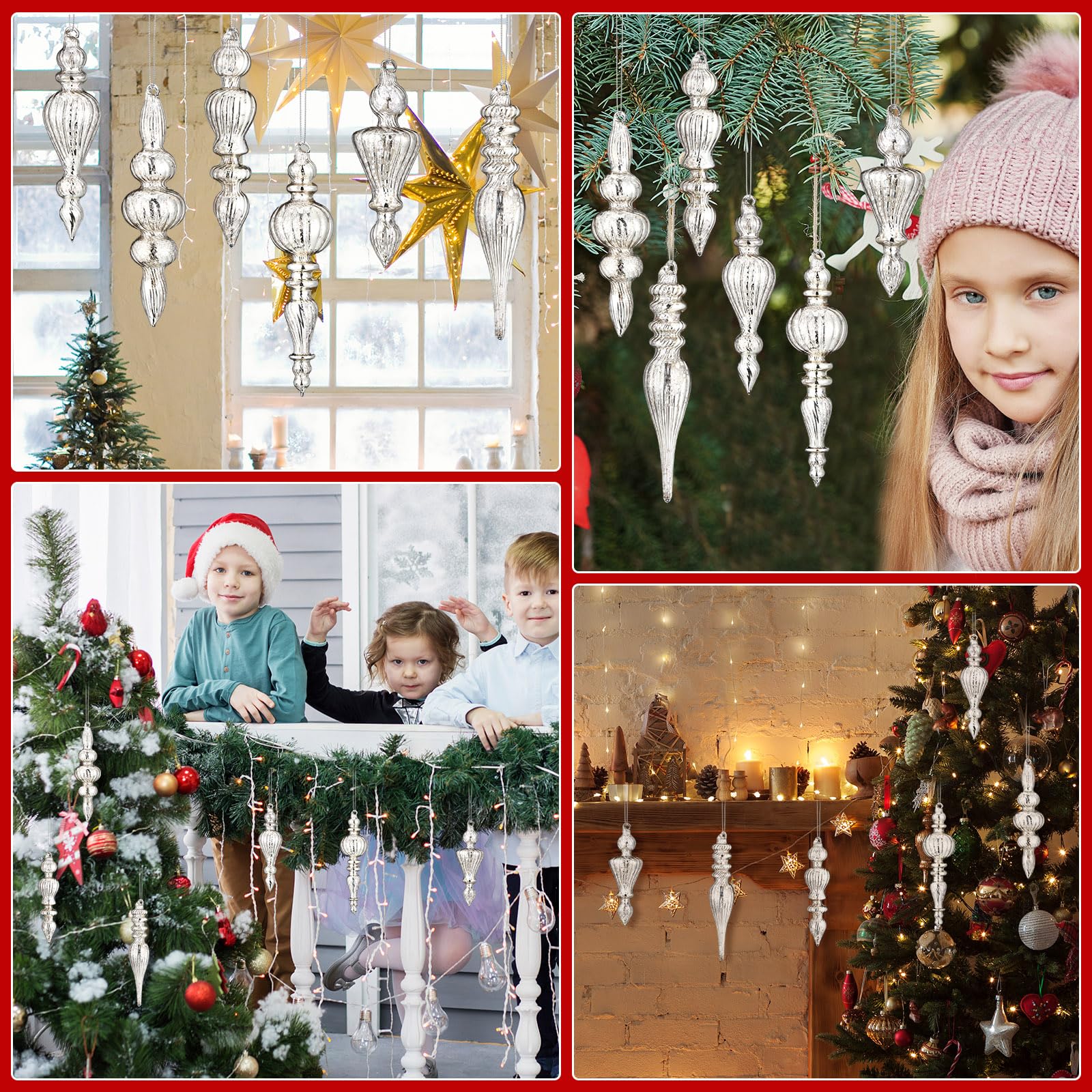 Diese wunderschönen Glas-Spitzen machen deinen Weihnachtsbaum perfekt! 6 Stück im Set, alle im vintage Silber-Design mit rustikalem Charme. Aus robustem Glas gefertigt, glänzen sie herrlich im Lichterglanz. Größen von 13,5-16,5cm für abwechslungsreiche Optik. Mit praktischen Aufhängeringen einfach am Baum zu befestigen. Nicht nur als Baumspitze, sondern auch für Kränze, Girlanden oder Tischdekoration super geeignet. In wiederverwendbarer Box verpackt - Jahr für Jahr einsetzbar. Perfekt als Geschenk oder für die eigene Weihnachtsdekoration. Bringt sofort festliche Stimmung ins Haus!