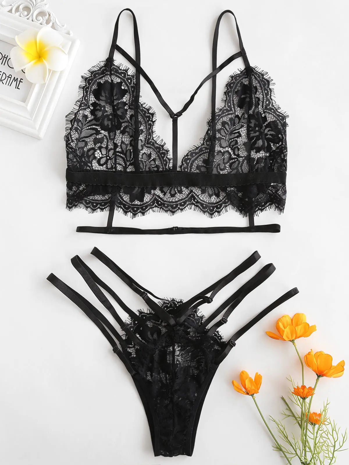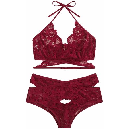 ADOME Damen Spitzen Dessous Set - Sexy 2-teiliger Bralette BH & Höschen Mit Strappy Design