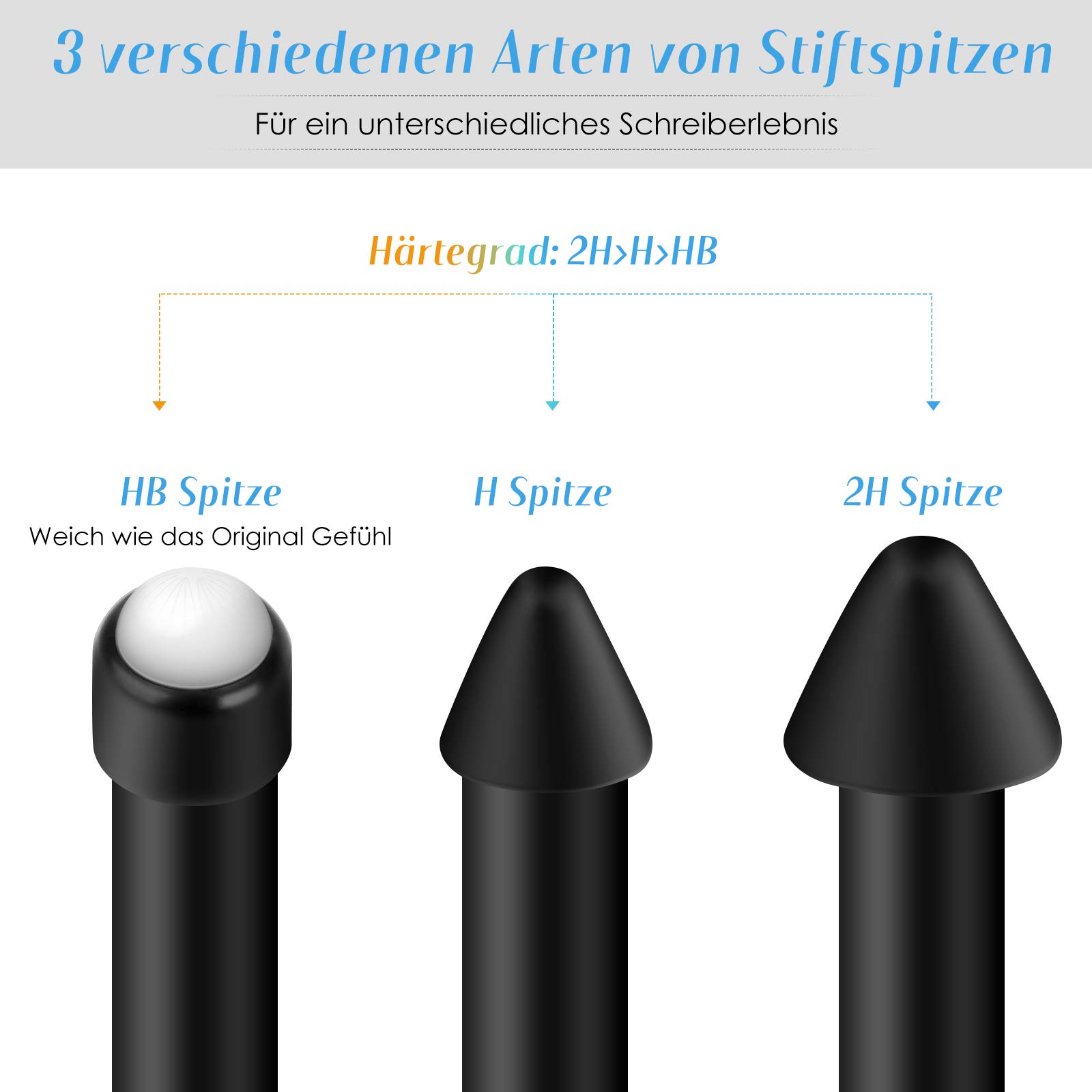 Perfekte Ersatz-Spitzen für deinen Surface Stift! 3 verschiedene Härtegrade: HB (weich wie Original), H (hart), 2H (extra hart). Kompatibel mit MEKO Surface Stift, Microsoft Surface Pro 2017 Pen (Modell 1776) und Surface Pro 4 Pen. Mit 4096 Druckstufen für natürliches Schreiben und Zeichnen. Neigungsfunktion für Schattierungen wie mit nem echten Stift. Einfach zu wechseln - ohne Werkzeug, einfach rausziehen und neue rein. Perfekt für Künstler, Studenten oder alle die viel mit dem Stift arbeiten. Jede Spitze gibt ein anderes Schreibgefühl. Mit 1 Jahr Garantie - sicher gekauft. Einfach bestellen und deinen Stift wieder wie neu machen!