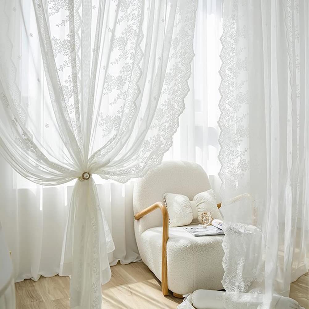 Diese wunderschönen Spitzenvorhänge bringen vintage Charme in dein Zuhause! Das elegante Paisley-Muster mit Blumen verleiht jedem Raum eine edle Note. In Elfenbein passen sie zu fast jedem Einrichtungsstil.