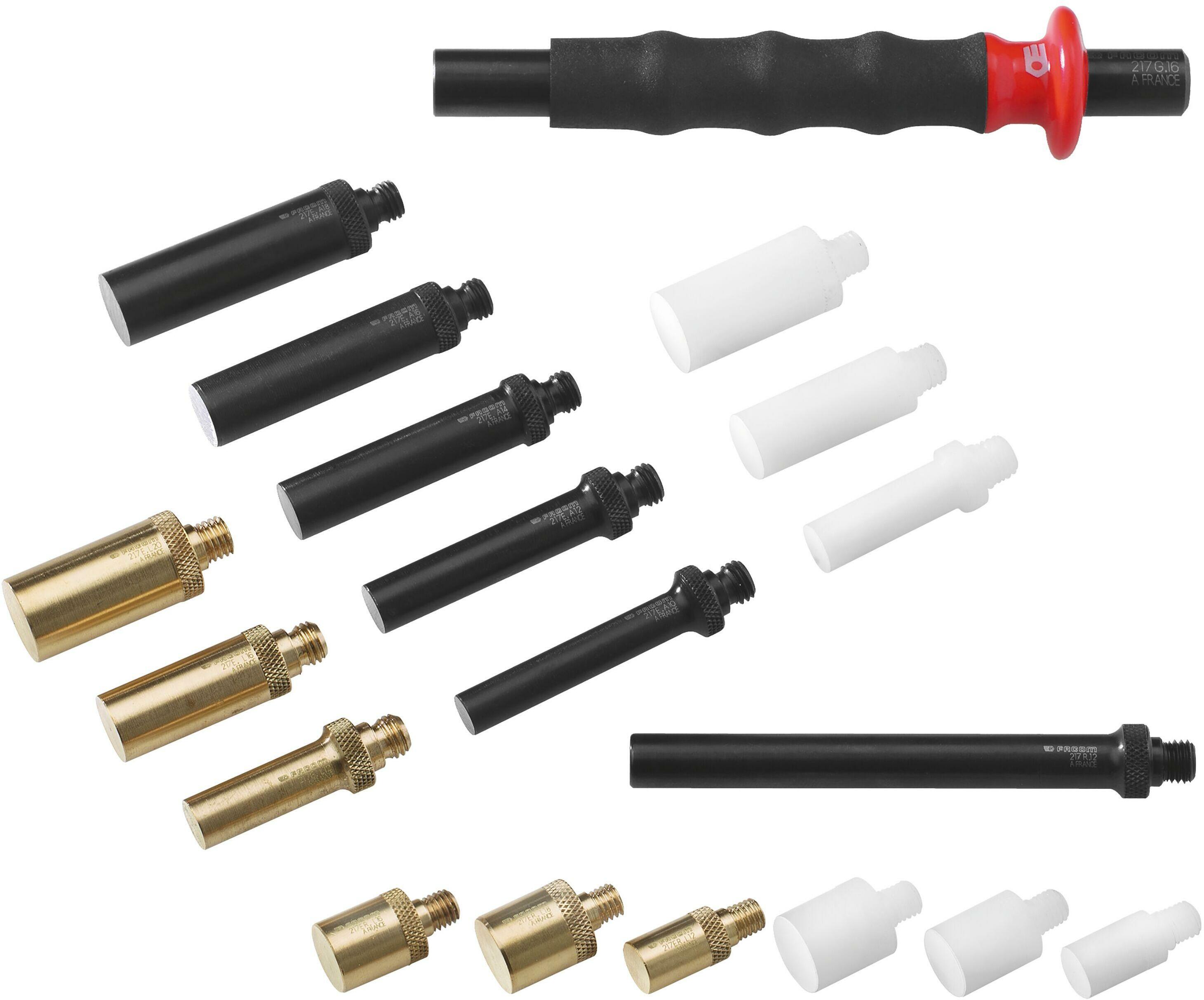 Profis schwören auf Facom - und dieses Splinttreiber-Set zeigt warum! Für Durchmesser von 10-20mm, mit dämpfendem Handgriff 217.G16. Im Set: Aluminium-Einsätze (10-18mm), Messing-Einsätze (12-20mm), Polyamideinsätze und Verlängerung. Alles ordentlich im Kunststoffkasten verstaut. Maße: 265x230x50mm, 1,4kg Gewicht. Perfekt für Werkstatt oder anspruchsvolle Hobby-Arbeiten. Facom-Qualität made in Germany - da weiß man, was man hat. Einmal kaufen, ein Leben lang Freude daran!