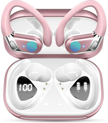 Für dein Workout die perfekten Begleiter! Diese Bluetooth-Kopfhörer mit Ohrhaken sitzen bombenfest - selbst beim intensivsten Training. Mit der neuesten Bluetooth 5.4 Technologie für stabile Verbindung und kaum spürbare Latenz. Bis zu 50 Stunden Spielzeit - 10 Stunden pro Ladung plus 4 weitere Ladungen im Case! IP7 wasserdicht - absolut schweiß- und regenfest. Die 4 ENC Mikrofone reduzieren Hintergrundgeräusche für klare Telefonate. Mit 13mm Treibern für satten Bass und klaren Höhen. Das duale LED-Display zeigt dir immer den Akkustand an. Touch-Bedienung für einfache Steuerung. Ob Laufen, Fitness oder Yoga - diese Ohrhörer halten mit dir Schritt und fallen garantiert nicht raus!