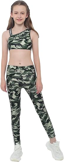 Das perfekte Sport-Outfit für aktive Mädchen! Dieses 3-teilige Set besteht aus einem bequemen Sport-BH mit Spaghettiträgern, einem stylischen Crop Top mit Kapuze und einer praktischen Shorts mit elastischem Bund. Aus 90% Polyester und 10% Elasthan - super atmungsaktiv, dehnbar und schnell trocknend. Mit coolem Camouflage-Print sieht es nicht nur sportlich aus, sondern ist auch total praktisch. Perfekt für Training, Fitness, Tanz, Gymnastik oder einfach zum Spielen. In Größen von 7-8 Jahre bis 13-14 Jahre verfügbar. Einfach anziehen und loslegen - deine Tochter wird sich wie eine echte Sportlerin fühlen!