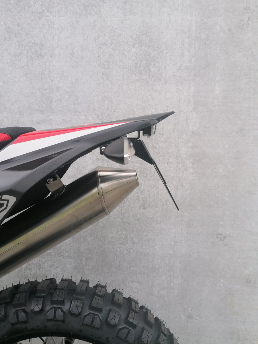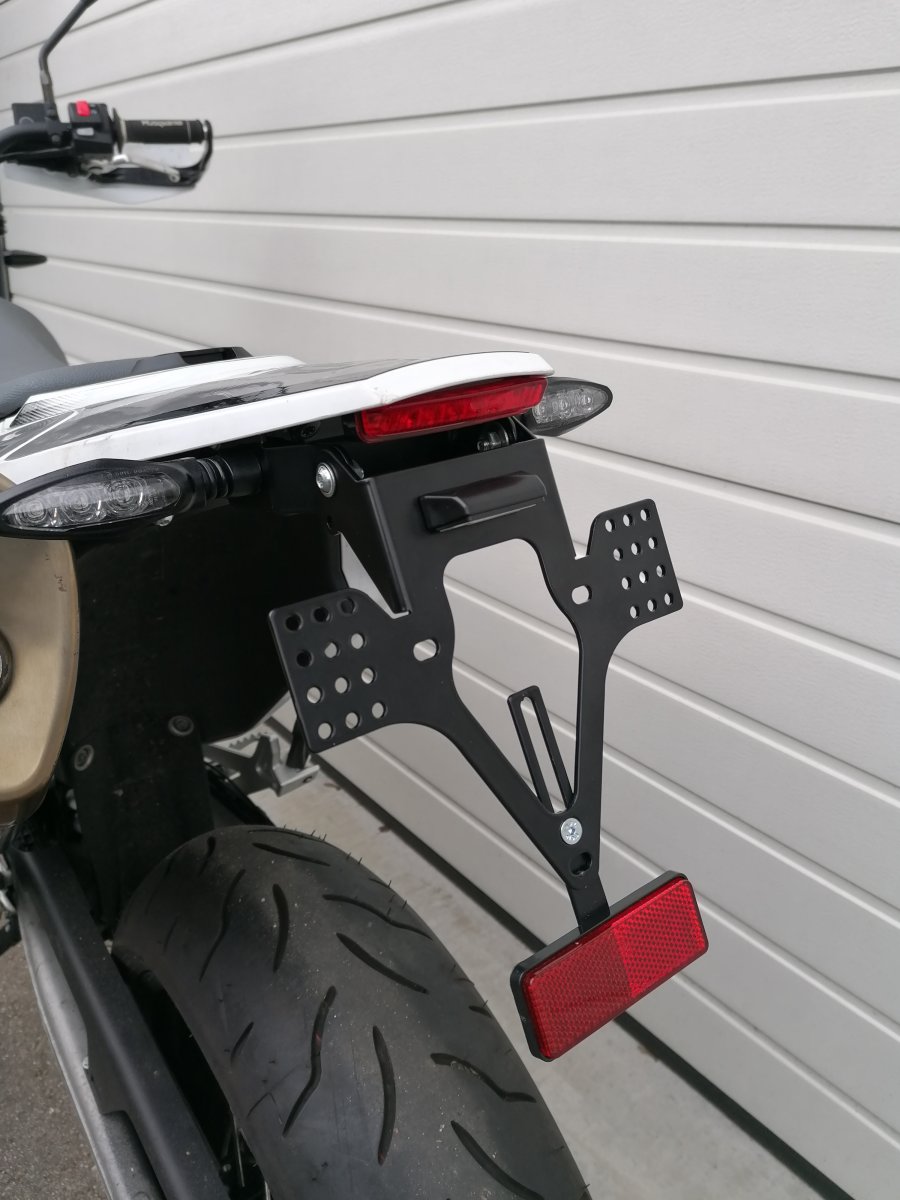 Das EVO Set ist speziell für die Fantic Caballero Modelle 125, 250 und 500 von 2018 bis 2025 designed. Einfach an den originalen Befestigungspunkten montieren - keine Bastelei an der Verkleidung nötig! Die Edelstahl-Kennzeichenauflage ist 180mm breit und lässt sich stufenlos im Neigungswinkel verstellen.