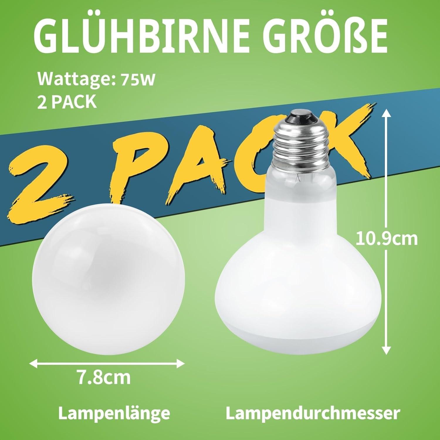 Das perfekte Klima für deine Reptilien! Diese 50 Watt Spot-Lampen schaffen ideale Bedingungen im Terrarium. Sie erhöhen die Umgebungstemperatur und bieten einen wohltuenden Sonnenbereich zur Thermoregulierung. Die UVA-Strahlen stimulieren das natürliche Verhalten und verbessern sogar die Tierfärbung. Ideal für die Zucht und das Wohlbefinden deiner Reptilien. Mit 6-monatiger Garantie - bei Qualitätsproblemen kostenloser Ersatz oder Rückerstattung. Zwei Lampen im Set für gleichmäßige Beleuchtung. Deine Reptilien werden es dir danken!