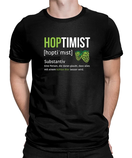 Prost! Dieses lustige Bier-T-Shirt ist einfach perfekt für alle, die ihr Bier lieben. Mit dem witzigen 'Hoptimist' Spruch 'Mit einem kühlen Bier wird alles besser' - da stimmt doch jeder Biertrinker sofort zu!