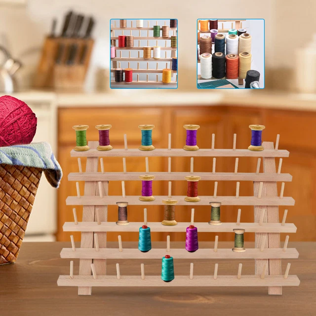 FUNSUEI 2er Set Spulenhalter Aus Holz - Organizer Für 60 Garnrollen Mit Aufhängehaken