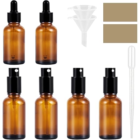 • LZMDISU Nasensprühflaschen-Set 6 Stück 30ml - Braune Glasflaschen Mit Trichtern