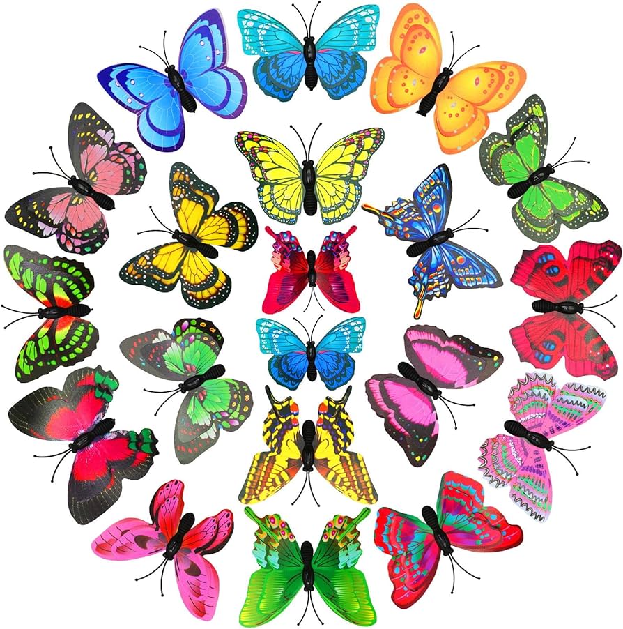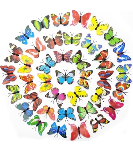 Suchst du nach einer lustigen, einfachen Deko? Diese 30 bunten Schmetterlinge mit goldenen Sicherheitsnadeln sind genau das Richtige! Jeder Schmetterling ist 6cm groß und aus robustem, wasserdichtem PVC. Die Flügel kannst du öffnen oder schließen, je nachdem wie du's magst. Einfach durch Stoff, Vorhänge oder andere Materialien stecken - kein Kleber nötig! Perfekt für Kleider, Röcke, Strickwaren, aber auch für Kinderzimmer-Deko, Vorhänge oder den Esstisch. Die gemischten Farben bringen sofort Fröhlichkeit in jeden Raum. Super für Bastelprojekte, Parties oder einfach mal zum Aufhübschen. Werde kreativ und verwandle deine Umgebung in einen fröhlichen Schmetterlingsgarten! Das Set ist riesig - mit 30 Stück kannst du richtig was machen. Auch toll für DIY-Projekte mit Kindern (unter Aufsicht wegen der Nadeln). Hol dir diese niedlichen Schmetterlinge und bring Farbe in dein Leben!