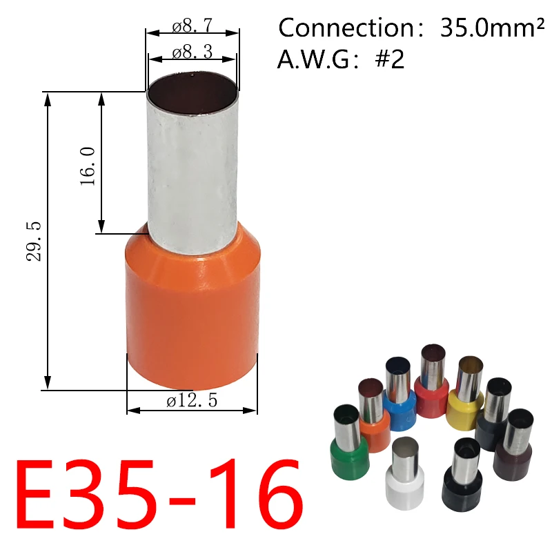 Kabelendhülsen Set - 50 Stück E35-16 AWG 2/35mm² Isoliert Rot