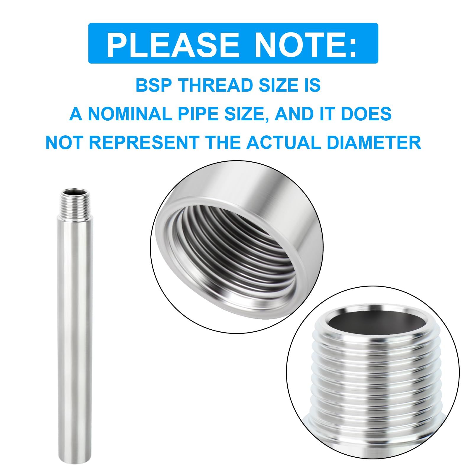 ERGAOBOY 2 Stück Edelstahl Nippel 200mm - 1/2" BSP Innengewinde X Außengewinde