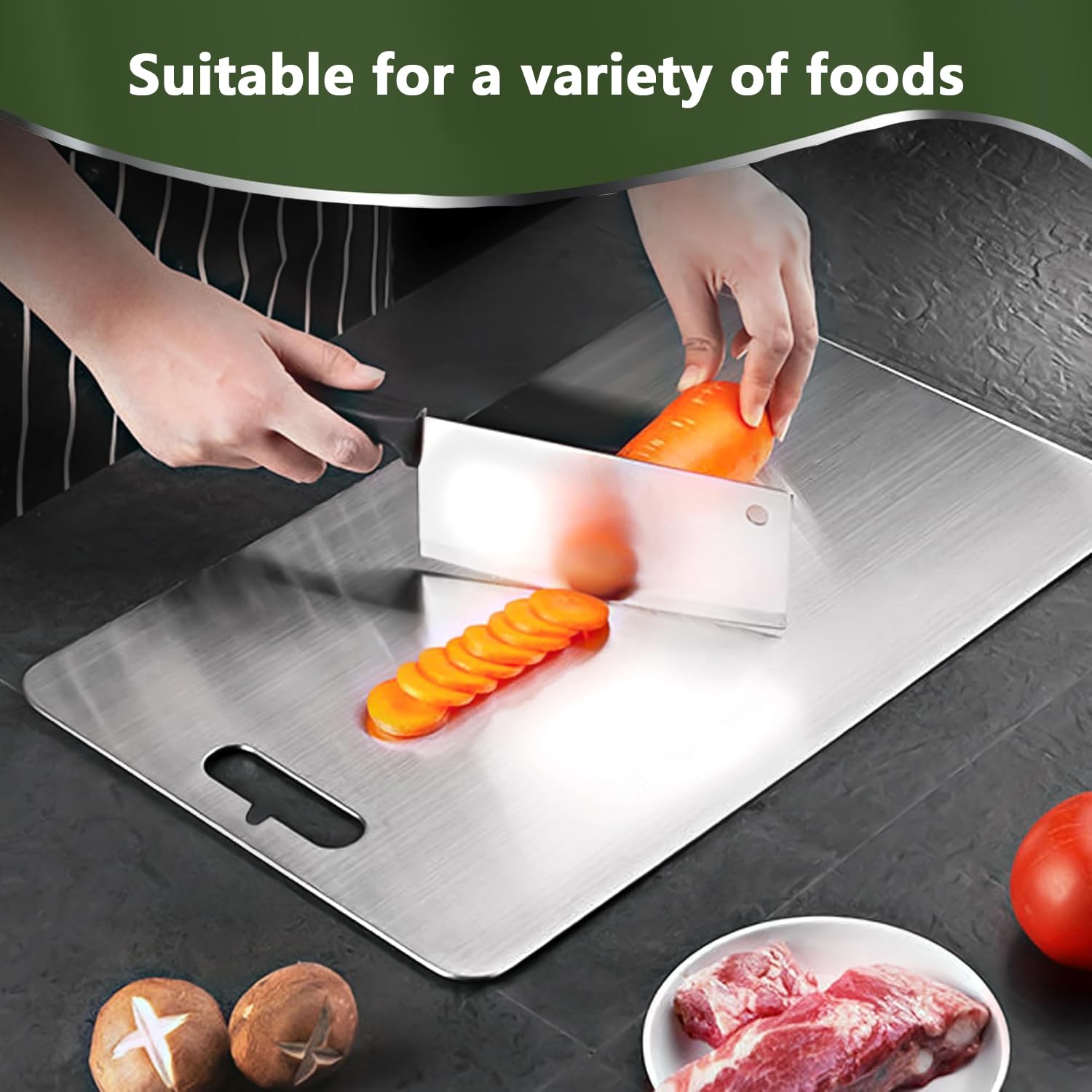 Hygiene in der Küche war noch nie so einfach! Diese 2 Edelstahl-Schneidebretter (je 15x24 cm) sind der Traum für jeden Hobbykoch. Aus lebensmittelechtem Edelstahl - absolut geruchsneutral und hygienisch. Keine Chance für Bakterien! Beidseitig nutzbar, perfekt zur Trennung von Fleisch und Gemüse. Einfach in der Spülmaschine reinigen oder schnell mit Wasser abspülen. Mit praktischem Aufhängeoch für platzsparende Lagerung. Kein Verformen, kein Brechen - diese Bretter halten ewig! Super fürs Schneiden, aber auch klasse als Servierplatte. BPA-frei und lebensmittelecht, also völlig unbedenklich. Endlich Schluss mit Holz- oder Plastikbrettern, die Gerüche annehmen. Einfach abwaschen und sie sind wie neu. Das Set ist preislich unschlagbar für die Qualität!