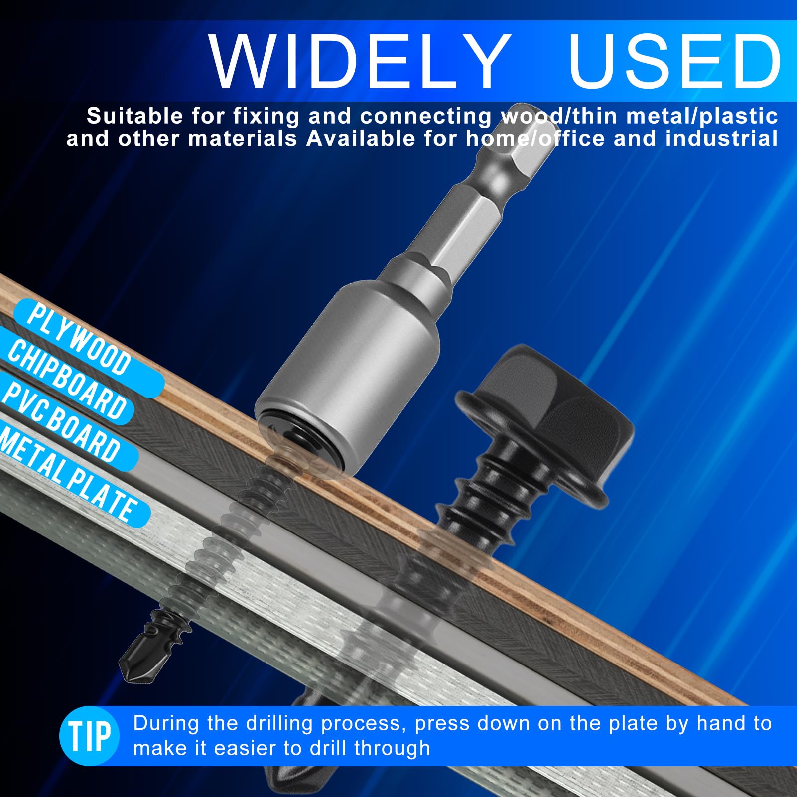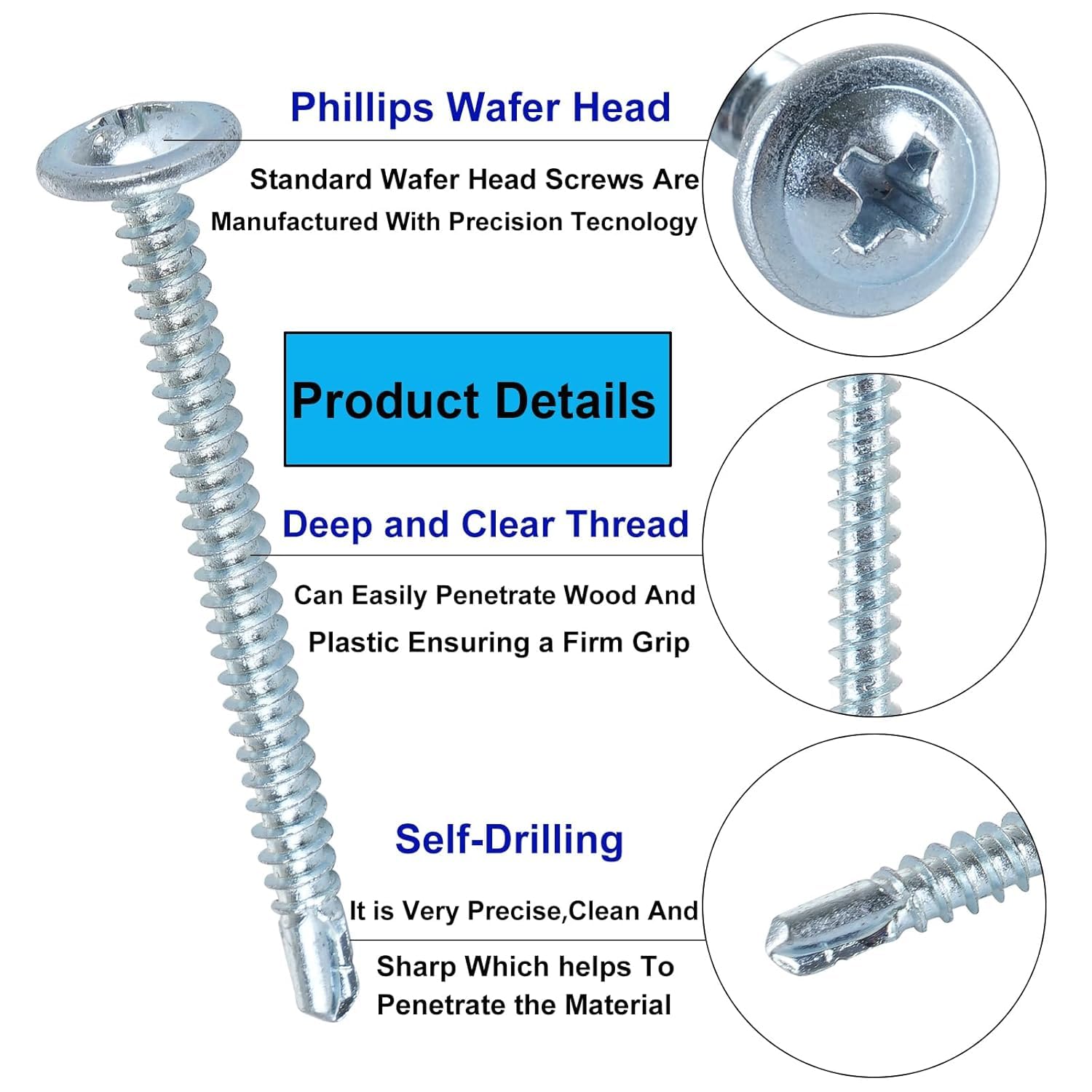 Die Alleskönner für deine Bastelprojekte! Dieses 80-teilige Set Schwarzoxid-beschichteter Edelstahl-Schrauben in der Größe M4,2x50mm (#8 x 2 Zoll) macht Montagearbeiten zum Kinderspiel. Aus korrosionsbeständigem 410 Edelstahl gefertigt, widerstehen die Schrauben selbst feuchten und salzhaltigen Umgebungen - perfekt für den Innen- und Außenbereich. Die selbstbohrende Spitze durchdringt Stahl, Aluminium, Holz und Kunststoffe mühelos, sodass separates Vorbohren oft entfällt. Der integrierte Tellerkopf mit Scheibenfunktion verteilt den Druck gleichmäßig und beugt Materialrissen vor. Die Phillips-Kreuzschlitz-Aufnahme gewährleistet festen Bithalt und effiziente Drehmomentübertragung. Im Set inklusive: 80 Schrauben plus 1 Phillips-Bit in praktischer transparenter Aufbewahrungsbox. Ideal für Möbelmontage, Haushaltsgeräte, Fahrzeugverkleidungen und DIY-Projekte. Achtung: Von Kindern fernhalten und Schutzausrüstung tragen! Professionelle Qualität für Heimwerker und Profis.