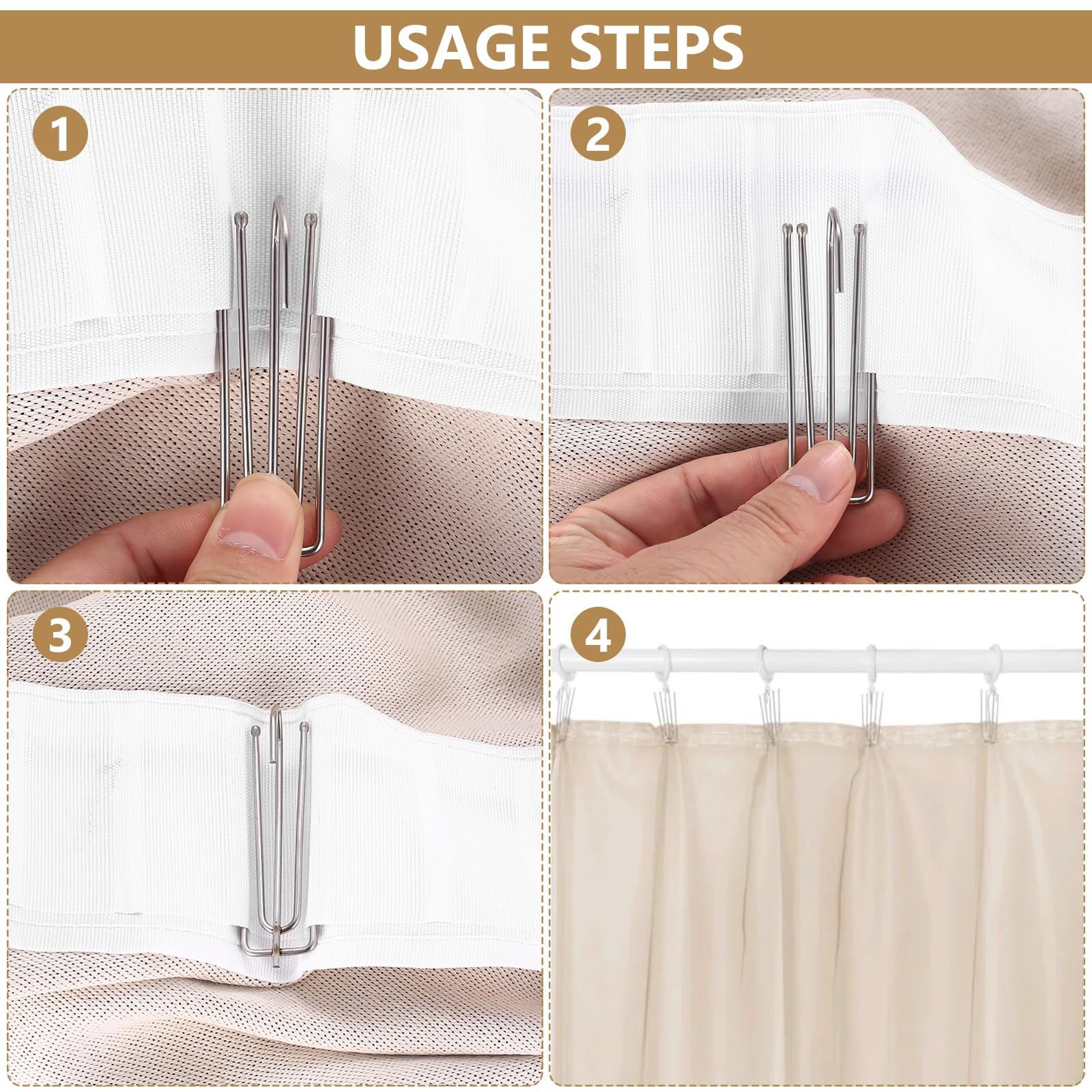 Gardinenhaken 60 Stück Edelstahl - Vorhanghaken Mit 4 Zinken Für Schienen