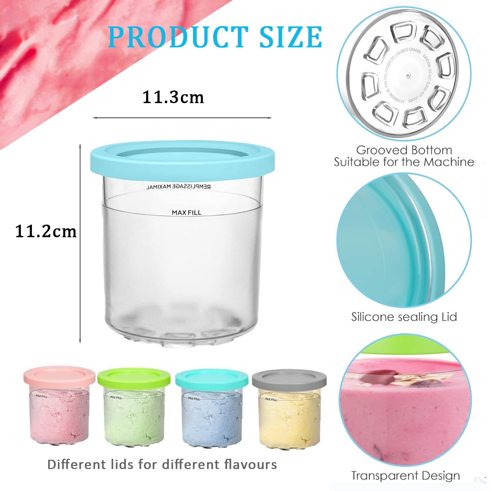 Mach mehr aus deiner Creami Eismaschine! Dieses Set mit 4 wiederverwendbaren Vorratsgläsern in Rosa, Grün, Grau und Blau ist perfekt, um verschiedene Eissorten vorzubereiten, zu lagern und leicht zu unterscheiden. Die Behälter aus lebensmittelechtem PP-Material sind spülmaschinenfest, haben glatte Innenwände für leichte Reinigung und dichte Deckel, die Fremdgerüche fernhalten. Mit ca. 11 x 9 x 10,5 cm sind sie platzsparend im Gefrierschrank untergebracht. Ideal nicht nur für Eis, sondern auch für Smoothies, Joghurt oder Gelee. Inklusive praktischem Grablöffel und Schaufeln – dein Eisgenuss war noch nie so organisiert!