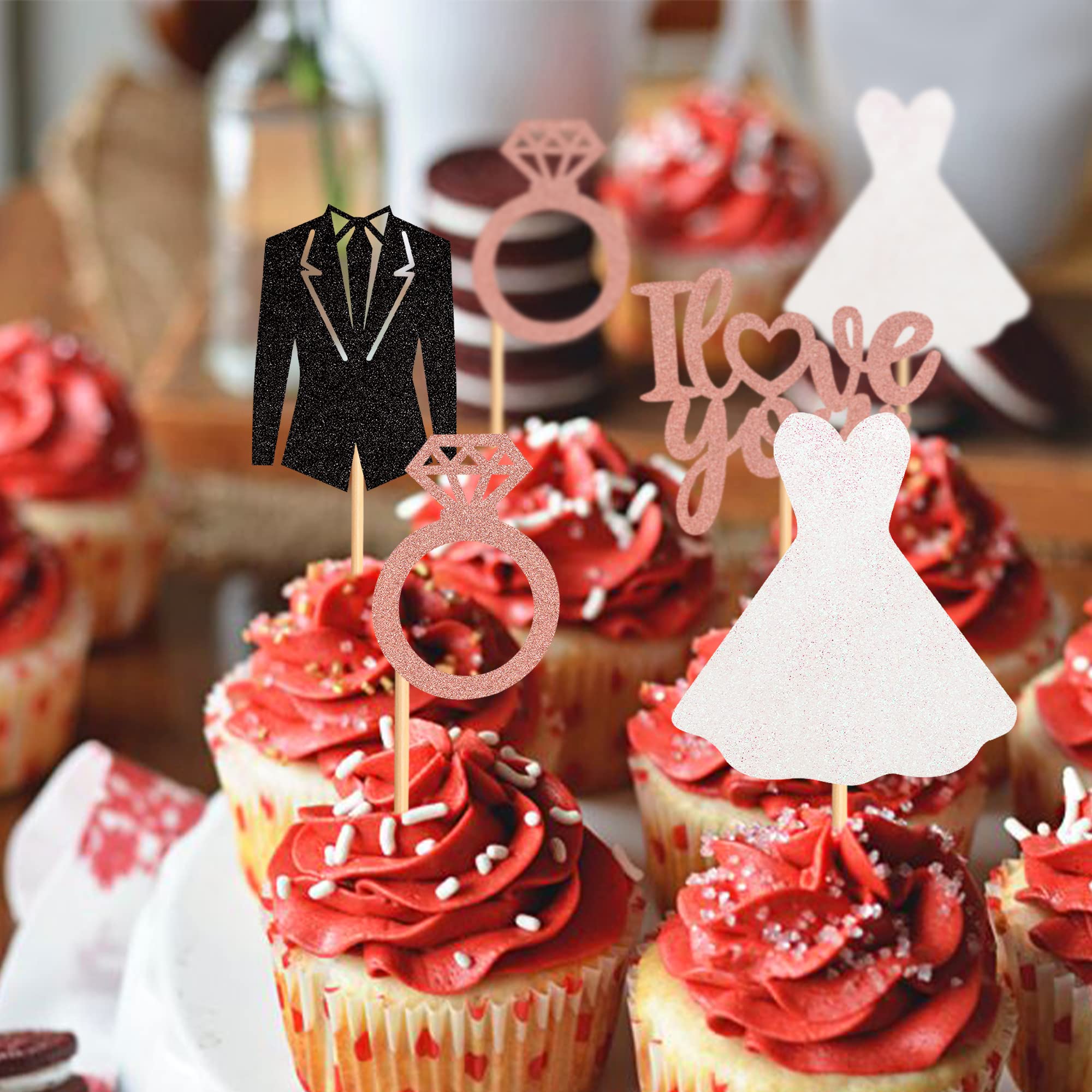 Wunderschöne Cupcake-Toppers für die perfekte Hochzeitsfeier! 25 Stück mit verschiedenen Motiven - Braut, Bräutigam, Ringe und mehr. Aus hochwertigem 300g Glitzerkarton mit Zahnstochern in Lebensmittelqualität. Vormontiert und sofort einsatzbereit. Perfekt für Cupcakes, Kuchen, Desserts, Käseplatten und mehr. Machen jede Tafel zu einem Blickfang. Ideal für Hochzeiten, Verlobungen, Jubiläen und romantische Feiern. Einfach in die Cupcakes stecken - fertig ist die traumhafte Deko! Nicht für Mikrowelle oder Ofen geeignet. Mach deine Party unvergesslich mit diesen bezaubernden Toppern!