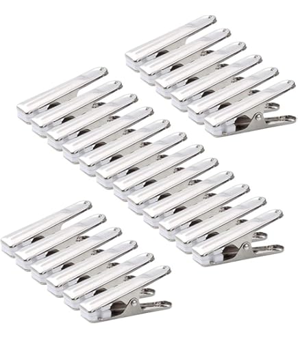 Schluss mit kaputten Plastikklammern! Diese 30 Edelstahl-Wäscheklammern von AKlamater sind die Alleskönner für Haushalt und Büro. Aus robustem, rostfreiem Stahl gefertigt, halten sie ewig und verblassen nicht in der Sonne. Das besondere Detail: Eine Gummiabdeckung an der Öffnung verhindert Rutschen und schont deine Wäsche. Maße: Jede Klammer misst 2,16 x 0,9 Zoll. Super vielseitig einsetzbar: • Socken und Handtücher aufhängen • Chipstüten und Lebensmittel versiegeln • Fotos an der Wäscheleine befestigen • Dokumente und Papier sortieren Die glatte Oberfläche hinterlässt keine Falten auf der Kleidung und ist super hygienisch. Endlich Ordnung im Chaos - ob an der Wäscheleine, in der Küche oder im Home-Office!