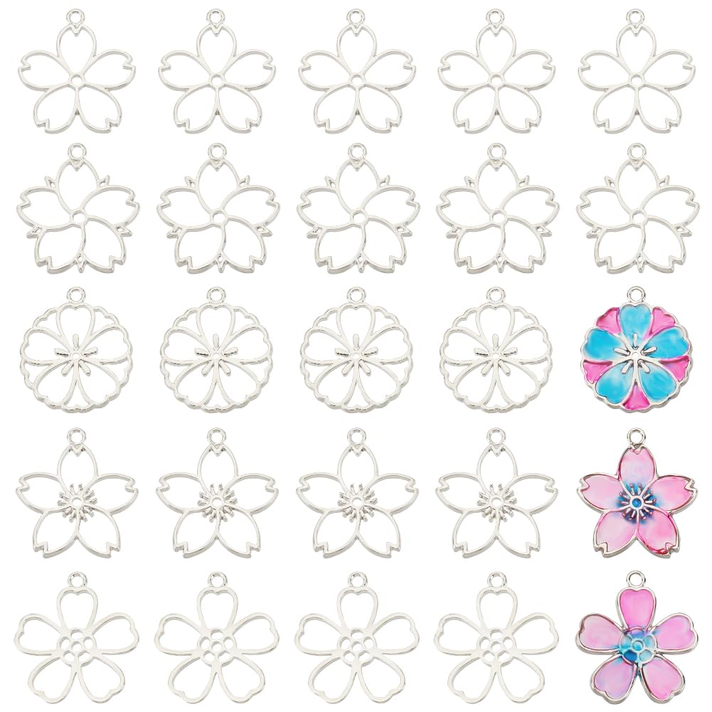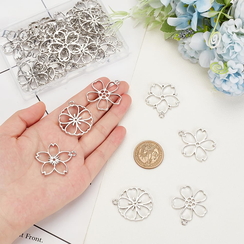 Bastelfans und Schmuckdesigner, dieses Set ist ein Traum! 30 Lünetten-Anhänger in 5 verschiedenen Designs - jeweils 6 Stück pro Design. Perfekt für UV-Harz Projekte, gepresste Blumen oder andere kreative Füllungen. Die Größen variieren zwischen 34-35mm Höhe und 22-31,5mm Breite.