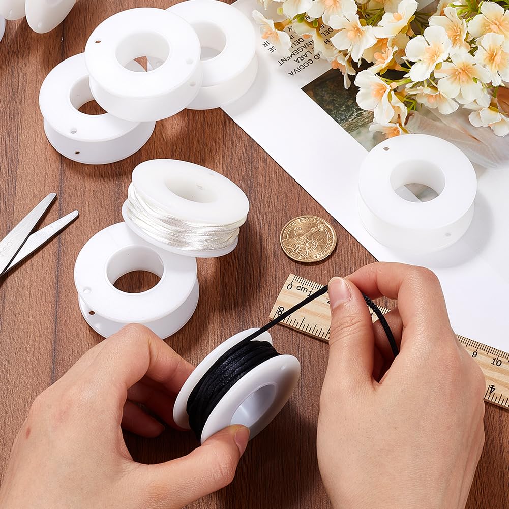 Bastelst du gerne und hast immer das Problem mit verwickelten Fäden? Diese 15 leeren Kunststoffspulen sind deine Rettung! Mit den Maßen 68x74mm sind sie perfekt, um alle möglichen Fäden, Schnüre, Bänder und sogar dünne Ketten ordentlich aufzuwickeln. Aus hochwertigem, glattem Kunststoff gefertigt, sind sie leicht, langlebig und immer wieder verwendbar. Die Spule selbst misst 24x76mm und hat eine Rückplatte von 68x2mm. Super praktisch für alle Bastelprojekte - ob Kreuzstich, Häkeln, Schmuckherstellung oder einfach nur zur Aufbewahrung. Nie wieder Chaos in der Bastelkiste! Mit diesen Spulen hast du alles immer griffbereit und ordentlich. Perfekt für DIY-Begeisterte, Nähanfänger und professionelle Bastler gleichermaßen. Mach dein Hobby noch organisierter und angenehmer!