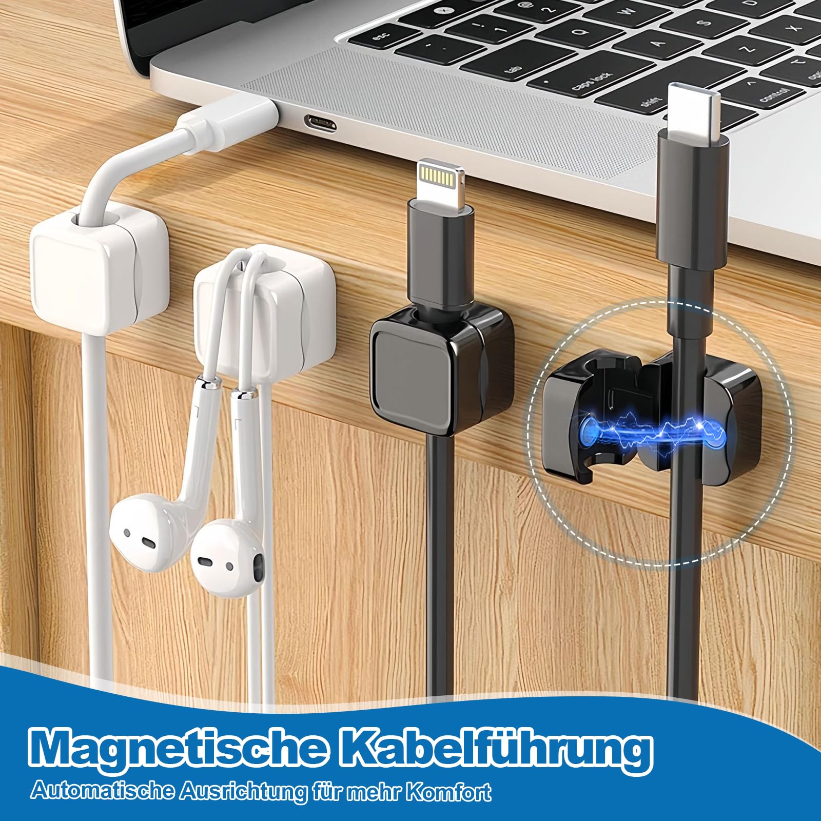 Schluss mit dem Kabelsalat! Diese 12 magnetischen Kabelhalter bringen endlich Ordnung in dein Kabel-Chaos. Stell dir vor: An deinem Schreibtisch sind alle Kabel ordentlich fixiert - USB, Ladekabel, HDMI, Audiokabel - alles hat seinen Platz. Die Halter kommen im praktischen Set mit 6 schwarzen und 6 weißen Clips, sodass du nach Farben sortieren kannst. Das geniale Magnet-System ermöglicht dir, Kabel mit nur einer Hand zu befestigen oder zu lösen. Super praktisch, wenn du mal schnell was einstecken oder wechseln musst! Die selbstklebende Rückseite haftet bombenfest auf Holz, Glas, Metall oder Keramik - ganz ohne Bohren oder Kleben. Einfach Schutzfolie abziehen, aufkleben und fertig! Jeder Clip passt für Kabel bis 7 mm Durchmesser. Ob am Schreibtisch, Nachttisch, im Auto oder an der Wand - diese Halter sind wahre Alleskönner. Sie sind unauffällig, sehen aber trotzdem stylisch aus. Nie wieder suchen, nie wieder entwirren - mit diesem System findest du jedes Kabel sofort. Dein Arbeitsplatz sieht aufgeräumt aus und du sparst dir jede Menge Nerven. Einfach ausprobieren - du wirst dich fragen, wie du je ohne leben konntest!