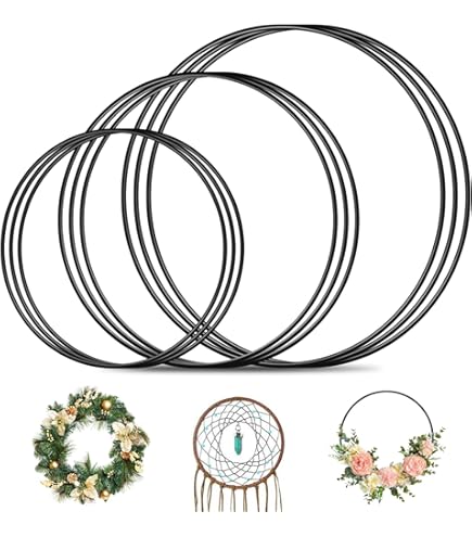 Bastelfreunde aufgepasst! Dieses Set mit 12 schwarzen Metallringen ist perfekt für deine kreativen Projekte. Enthält 4 Ringe in 10cm, 4 in 15cm und 4 in 20cm Durchmesser - alle ca. 3mm dick. Aus hochwertigem Metall mit Elektrophorese-Beschichtung - verblasst nicht und verformt sich nicht. Super für Makramee, Traumfänger, Hochzeitskränze, Wandbehänge oder Floristik. Du kannst sie aufhängen oder mit Sockel als Deko nutzen. Perfekt für Weihnachten, Hochzeiten, Geburtstage - oder einfach so für coole Heimdekoration!
