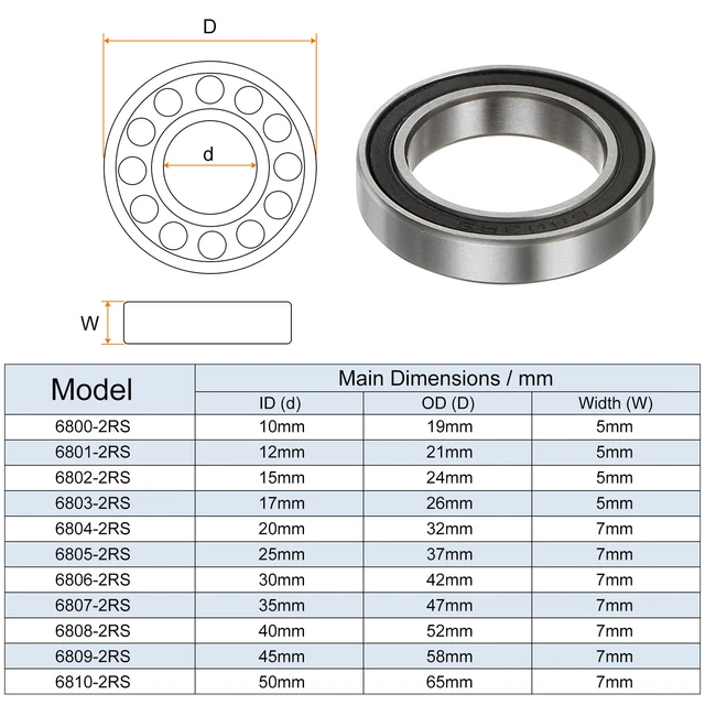 Doppelt versiegelt - hält Schmutz draußen und Schmiermittel drin. Aus Chromstahl GCr15 für maximale Haltbarkeit. Dynamische Tragfähigkeit von 2,7kN, statische von 1,3kN.