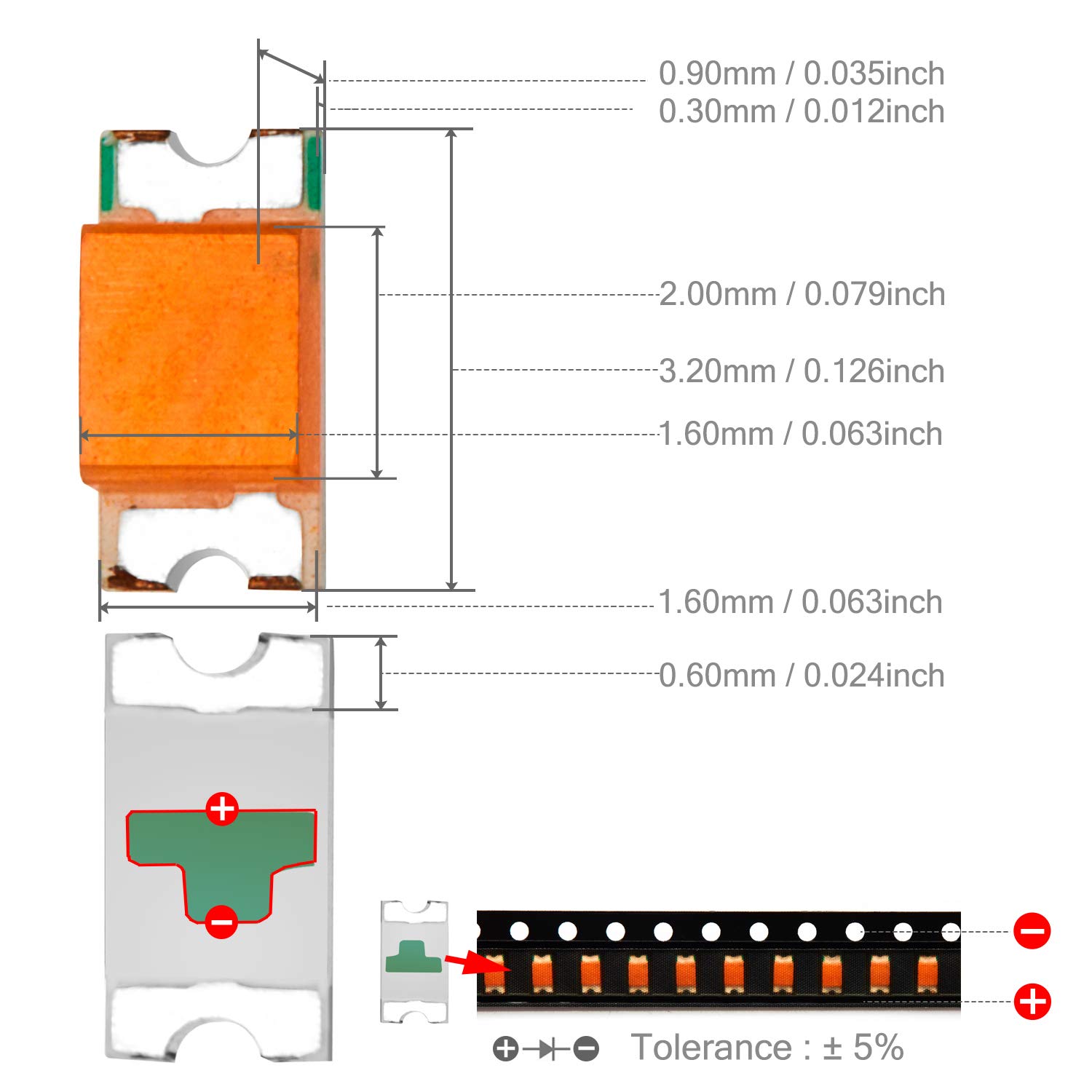 Technik: SMD 1206 • Spannung: 3-3,2V • Strom: 20mA • Farbe: Lila • Menge: 100 Stück