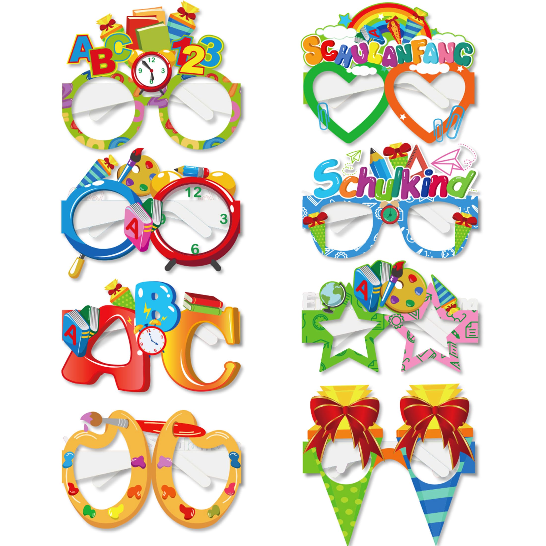 Perfekt für die Einschulung! Dieses Set mit 24 Partybrillen bringt jede Schulanfangs-Party zum Strahlen. Mit 8 verschiedenen Designs - ABC, 123, Schultüte, Wecker, Schulkind und mehr. Jedes Design gibt es 3x, also genug für die ganze Klasse! Aus hochwertigem Karton, langlebig und sicher für Kinder. Die bunten Farben sind super ansprechend und halten lange. Ideal für Fotoshootings, Schulfeiern oder als Gastgeschenk. Macht die Kinder zu echten Schulstars und sorgt für unvergessliche Fotos. Einfach aufsetzen und losstrahlen - der perfekte Spaß für den ersten Schultag!