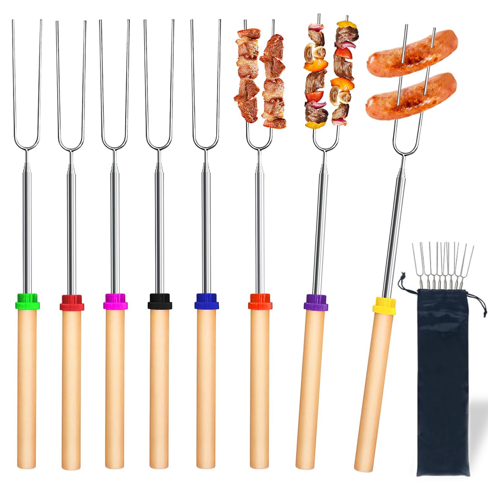 Endlich Grillspieße, die nicht immer so klobig sind! Diese 8 Teleskop-Spieße von LUMOOM sind total praktisch - sie lassen sich von 31cm auf satte 81cm ausziehen. Super fürs Lagerfeuer, damit die Kids nicht zu nah ans Feuer müssen. Aus rostfreiem Edelstahl und mit nem hitzebeständigen Holzgriff - also mega sicher und langlebig. Perfekt für Stockbrot, Marshmallows, Fleischspieße oder einfach alles, was man überm Feuer grillen will. Und nach dem Gebrauch einfach abwaschen oder in die Spülmaschine stecken - easy! Kommen mit nem Aufbewahrungsbeutel, also ideal für Camping-Ausflüge, Gartenpartys oder nen gemütlichen Grillabend. Macht jedes Lagerfeuer zu nem richtigen Erlebnis! Einfach auspacken, ausziehen und losgrillen - so macht Outdoor-Kochen richtig Spaß! 🔥🍖
