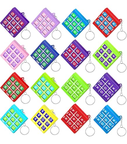 Wie cool sind denn diese Tic Tac Toe Schlüsselanhänger! 16 Stück im Set - perfekt für Kindergeburtstage, als Mitgebsel oder einfach so zum Verschenken. Aus hochwertigem ABS-Material gefertigt, total robust und ohne scharfe Kanten. Die kleinen Spiele sind nur wenige Zentimeter groß und passen super an Schulranzen, Turnbeutel oder Schlüsselbunde. Das geniale: Das Spielfeld lässt sich um 360 Grad drehen - so kann man überall und jederzeit eine schnelle Runde spielen! Egal ob in der Schulpause, auf Reisen oder beim Warten beim Arzt. Die bunten Farben machen richtig gute Laune und jedes Teil ist ein echter Hingucker. Aber es ist nicht nur Spielspaß - Tic Tac Toe fördert auch das logische Denken, die Konzentration und die Feinmotorik. Perfekt für Kinder zwischen 8 und 12 Jahren. Und weil's 16 Stück sind, kann die ganze Klasse mitspielen oder du hast genug für die nächste Party. Einfach ans Federmäppchen hängen oder in die Hosentasche stecken - der Spaß ist immer dabei. Macht sich auch super als kleine Aufmerksamkeit zu Weihnachten oder Ostern. Qualitativ echt gut verarbeitet und die Metallringe halten sicher.