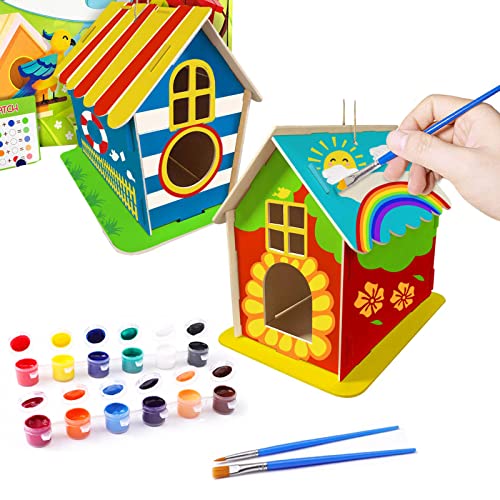 Dieses 6er-Set Vogelhaus-Bausätze ist ein Riesenspaß für kreative Kinder! Aus hochwertigem Buchsbaumholz gefertigt, sind die Häuschen robust, ungiftig und für Innen- und Außenbereich geeignet. Jedes Haus besteht aus 7 vorgefertigten Teilen - super einfach zusammenzubauen. Im Set enthalten: 6 Vogelhäuser, 6 Käfige, 6 Hanfseile, 18 Farben, 2 Pinsel, 2 Kristallaufkleber und 12 Farbstifte. So können die Kids ihrer Fantasie freien Lauf lassen und die Häuschen bunt bemalen und verzieren. Perfekt um Feinmotorik, Kreativität und Naturverständnis zu fördern. Die fertigen Kunstwerke können im Garten, auf dem Balkon oder im Zimmer aufgestellt werden. Ein tolles Geschenk für Geburtstage, Weihnachten oder Ostern - pädagogisch wertvoll und mega unterhaltsam!