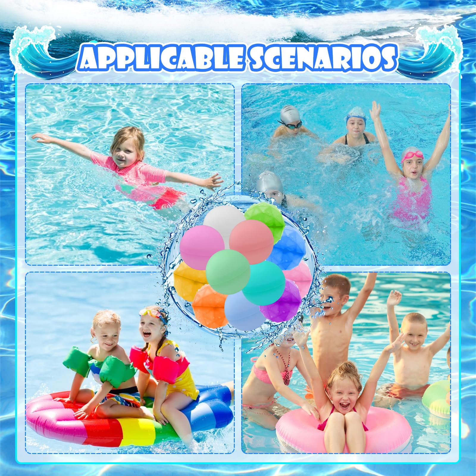 Sommer, Sonne, Wasserspaß! Diese 12 wiederverwendbaren Wasserbomben aus Silikon bringen Action in jeden Pool-Tag. Einfach ins Wasser tauchen, kurz warten - und schon sind sie voll! 💦\n\nAus weichem, hochwertigem Silikon - geruchlos und hautfreundlich. Keine scharfen Kanten, keine Verletzungsgefahr. Perfekt für Kinder, aber auch Erwachsene haben ihren Spaß damit!\n\nDas coole Rauten-Design sorgt für einen lustigen Spritzeffekt beim Werfen. Die bunten Farben machen jede Wasserschlacht noch fröhlicher. Und das Beste: Kein lästiges Aufsammeln von Plastikresten!\n\nEinfach nach dem Spielen abtropfen lassen und für den nächsten Einsatz bereithalten. Kein Aufpumpen, kein Knoten - einfach praktisch!\n\nOb im eigenen Garten, am Strand, im Freibad oder auf der Poolparty - diese Wasserbomben sind immer dabei. Auch toll für Haustiere (unter Aufsicht natürlich)!\n\nEin super Geschenk für Geburtstage, Sommerfeste oder einfach so. Mach den Sommer 2024 zum unvergesslichen Wasserspaß! Endlich keine umweltschädlichen Einweg-Wasserbomben mehr.