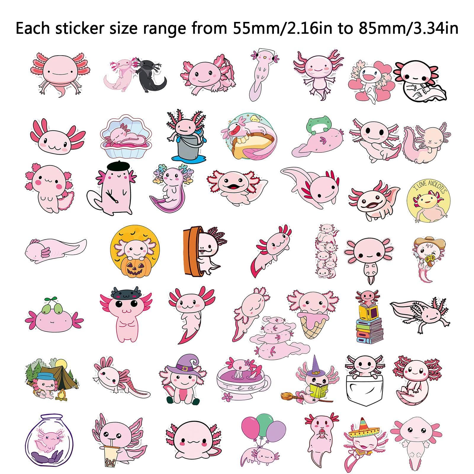 50 mal niedlich! Diese Axolotl-Aufkleber bringen Farbe in dein Leben. Wasserdicht, ölbeständig und sonnenfest. Größen von 55-85mm, alle Motive unterschiedlich. Perfekt für Trinkflaschen, Laptops, Skateboards. Einfach abziehbar ohne Rückstände. Ideal für Kinder und Erwachsene. Zeig deine Liebe zu den süßen Wasserdrachen! Einfach aufkleben und strahlen - wie die Axolotls selbst.