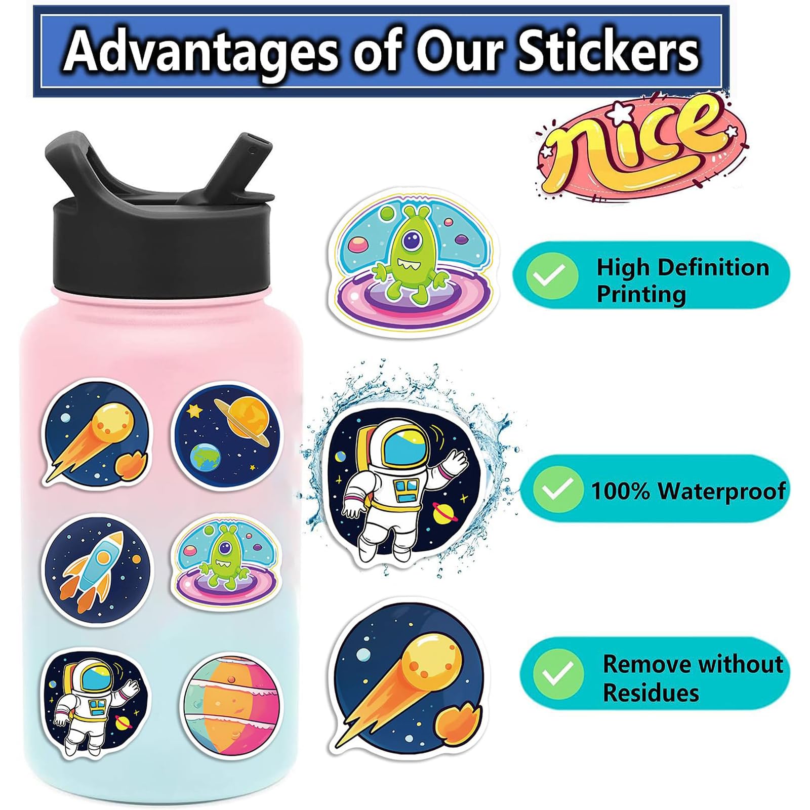 Wow, diese Weltraum-Aufkleber sind ja der Hammer! Mit 100 coolen Motiven - 50 Planeten und 50 Astronauten - kannst du alles bekleben was dir in die Quere kommt. Ob Laptop, Wasserflasche, Skateboard oder Schulhefte - diese 8x8 cm großen Sticker aus hochwertigem PVC halten was aus! Super wasserdicht und lichtbeständig, also kein Verblassen oder Ablösen. Die selbstklebende Rückseite ist mega praktisch - einfach abziehen und aufkleben! Perfekt für Kinderzimmer-Deko, Schulmaterial oder einfach um deine Sachen aufzupeppen. Mach deine Trinkflasche zur galaktischen Rakete oder deinen Laptop zum Raumschiff! Einfach unendlich viele Möglichkeiten für alle Weltraum-Fans da draußen. Und mit 100 Stickern ist für jeden was dabei - ob zum Tauschen, Verschenken oder einfach selbst sammeln!