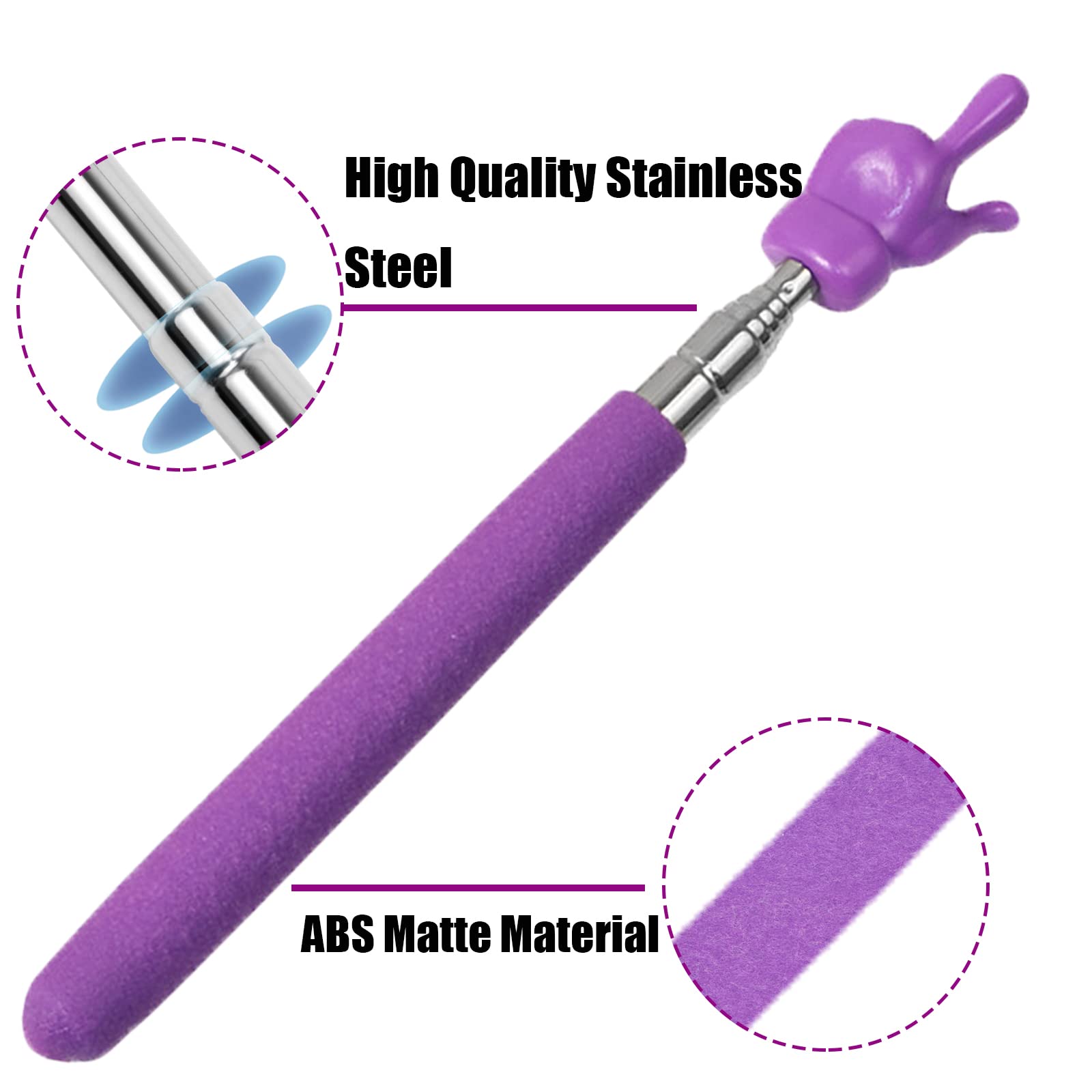 Perfekt für Unterricht und Präsentationen! Dieses Set mit 4 ausziehbaren Zeigestäben in knalligen Farben (Lila, Rosa, Gelb, Blau) macht jede Präsentation lebendiger. Von kompakten 21,5cm auf volle 68cm ausziehbar - ideal für verschiedene Einsatzzwecke. Das coole Finger-Design zieht garantiert die Aufmerksamkeit auf sich und fördert interaktives Lernen. Aus robustem Edelstahl und PP gefertigt, brechen oder verformen sich nicht so leicht. Ob im Klassenzimmer, bei Konferenzen, Vorträgen oder Museumsführungen - mit diesen Pointern zeigst du genau, was wichtig ist. Leicht und handlich, perfekt für unterwegs. Jeder Stab hat ein einzigartiges Farbdesign, sodass mehrere Personen ihre eigenen Pointer haben können. Ein unverzichtbares Tool für Lehrer, Dozenten, Trainer und alle, die professionell präsentieren möchten. Einfach ausziehen, zeigen, einklappen - mehr Aufwand ist nicht!