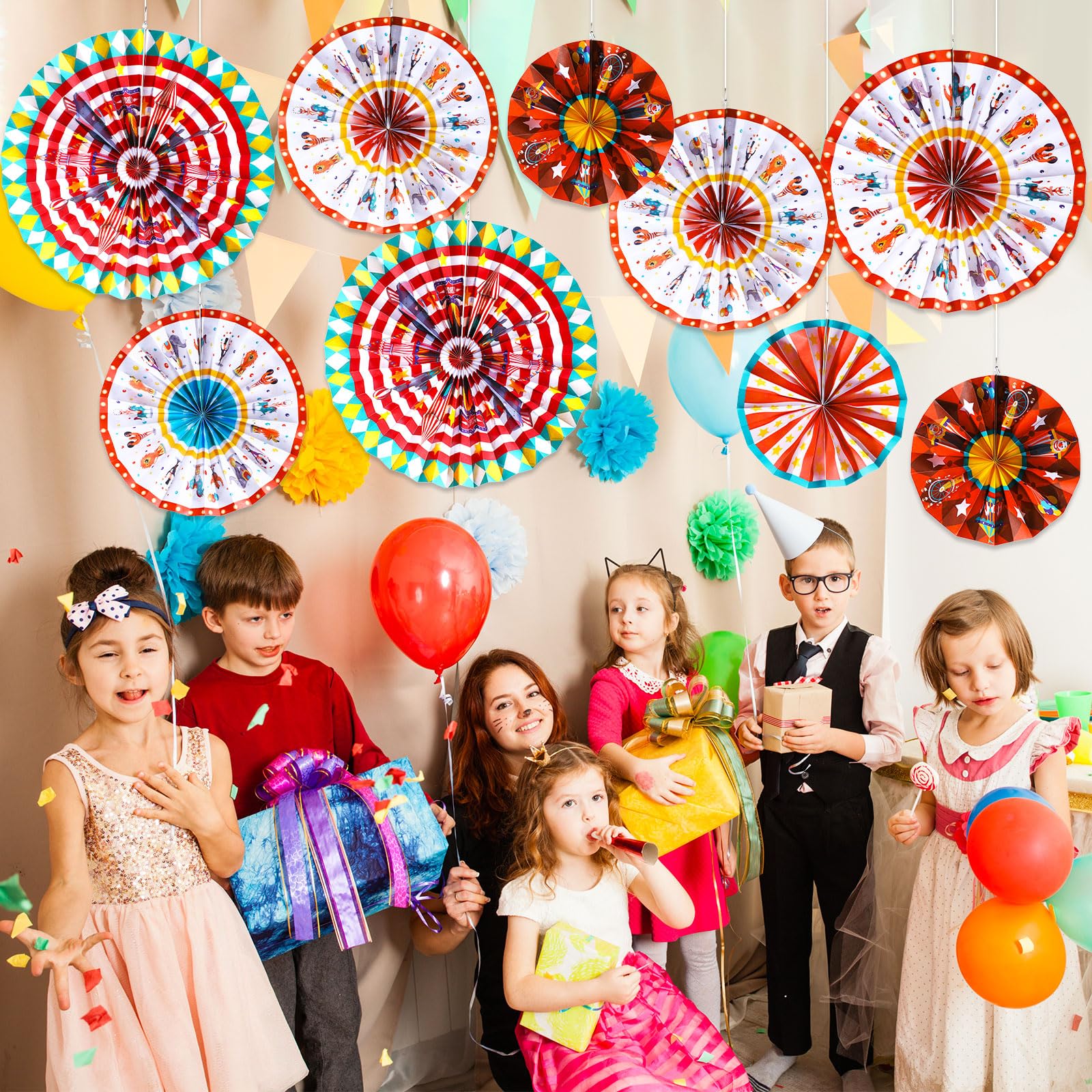 • DIYEAH Runde Papierlaternen 4 Stück - Zirkus Partydeko Für Kindergeburtstag