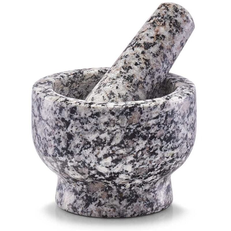 Das Set kommt komplett mit Mörser und Stößel. Die raue Innenoberfläche zerkleinert mühelos auch härtere Gewürze wie Pfefferkörner oder Kreuzkümmel.